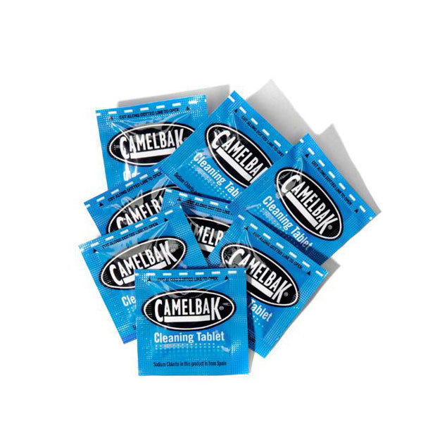 Designed to keep your hydration system clean. Camelbak Cleaning Tablets are formulated to reduce taste and odor via a convenient tablet. You drop one Camelbak Cleaning Tablet in a water-filled reservoir. Then foaming action wipes out the dirt and grunge that has built up over long periods of time. Using safe Chlorine Dioxide, each tablet cleans up to a 100 ounce reservoir.