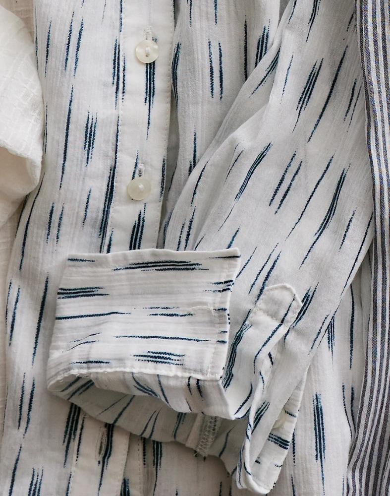 Carve Design's favorite Coastal Gauze fabric in a full button tunic style. This top is so versatile it's a must have for all. Layer it over a tank or under a vest. Wear tied at the waist or wear it long and untucked.