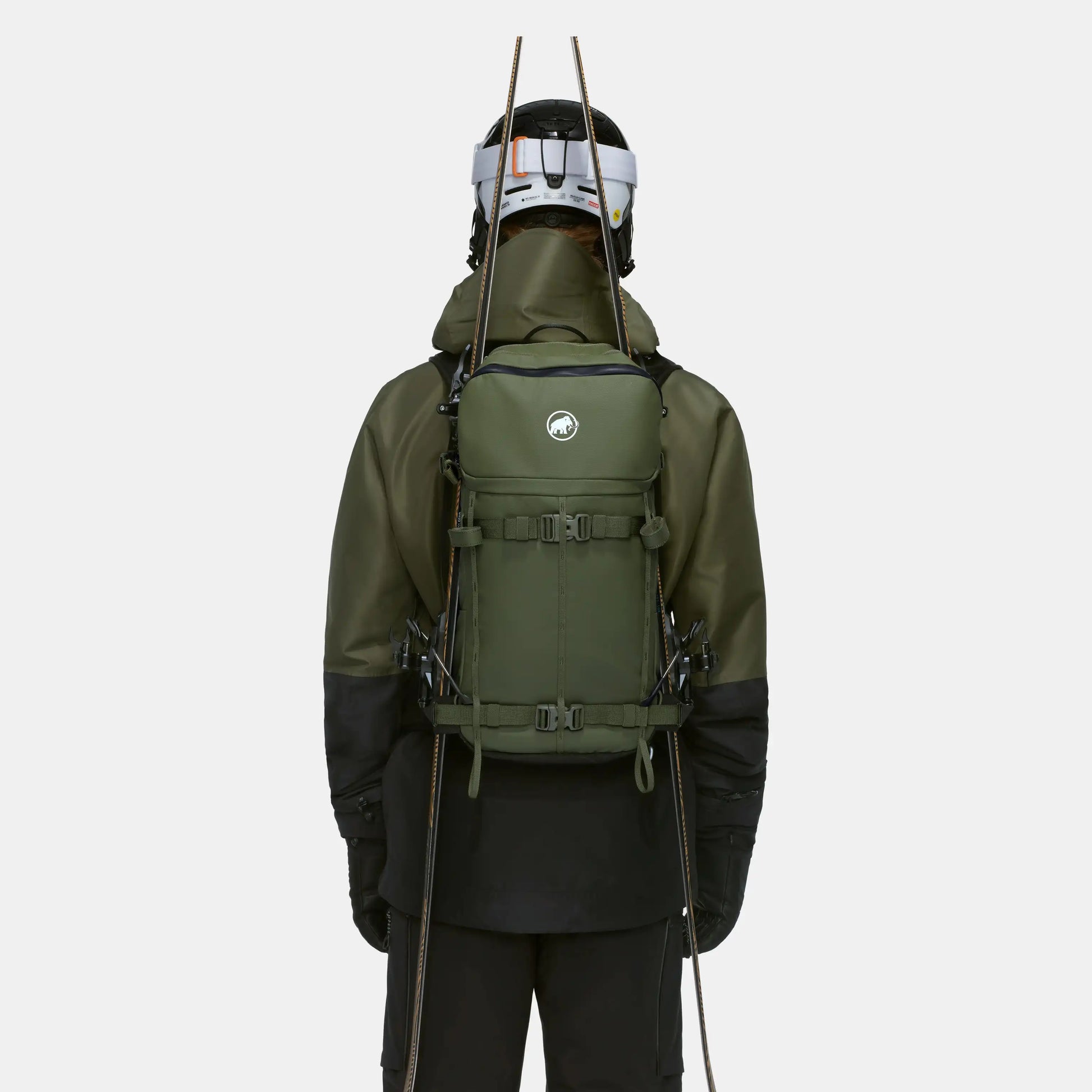 The Mammut Nirvana 28 is purpose-built for backcountry skiers and freeriders who demand quick access to essential gear. A dedicated avalanche equipment compartment keeps your beacon, probe, and shovel organized and within arm's reach when seconds count. The 28-liter capacity strikes the perfect balance—large enough for a full day of lift-supported touring or backcountry exploration, yet compact enough to move freely on steep terrain. Thoughtful organization pockets secure your layers, snacks, and navigation tools, while the pack's streamlined design minimizes bulk without sacrificing functionality. Ideal for spring corn runs, off-piste adventures, and everything in between.