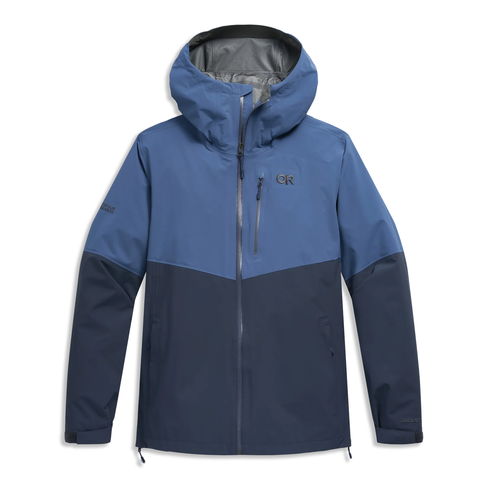The Foray 3L Jacket is Outdoor Research's top-selling three-layer high-performance rain shell and the new standard in breathable, waterproof rain protection. Now featuring an exclusive Nikwax DWR and 100% recycled 3L fabric with movement-mirroring stretch, the Foray is the first technical apparel in the outdoor industry to be certified carbon-neutral by Climate Impact Partners. New for 2024, the Foray features an all-new stretchy three-layer 100% recycled nylon shell that moves, flexes, and compliments the body's range of motion and Nikwax's Direct.Dry, a high-performance, durable factory-applied DWR exclusively available on our Foray/Aspire Collection. Outdoor Research's proprietary AscentShell™ Dry technology delivers superior breathability, waterproofing, and wind resistance, keeping moisture out and allowing sweat vapor to effortlessly pass through to regulate body temperature. Their legendary TorsoFlo™ venting design provides rapid dump by unzipping nearly the entire length of the side of the jacket from the hem to the bicep and allows the wearer to access base layers, pockets, and waist belts without removing the jacket. Other features include a fully adjustable hood with bonded brim, YKK® Aquaguard® zippers, zippered chest and hand pockets, and an internal pocket key clip.