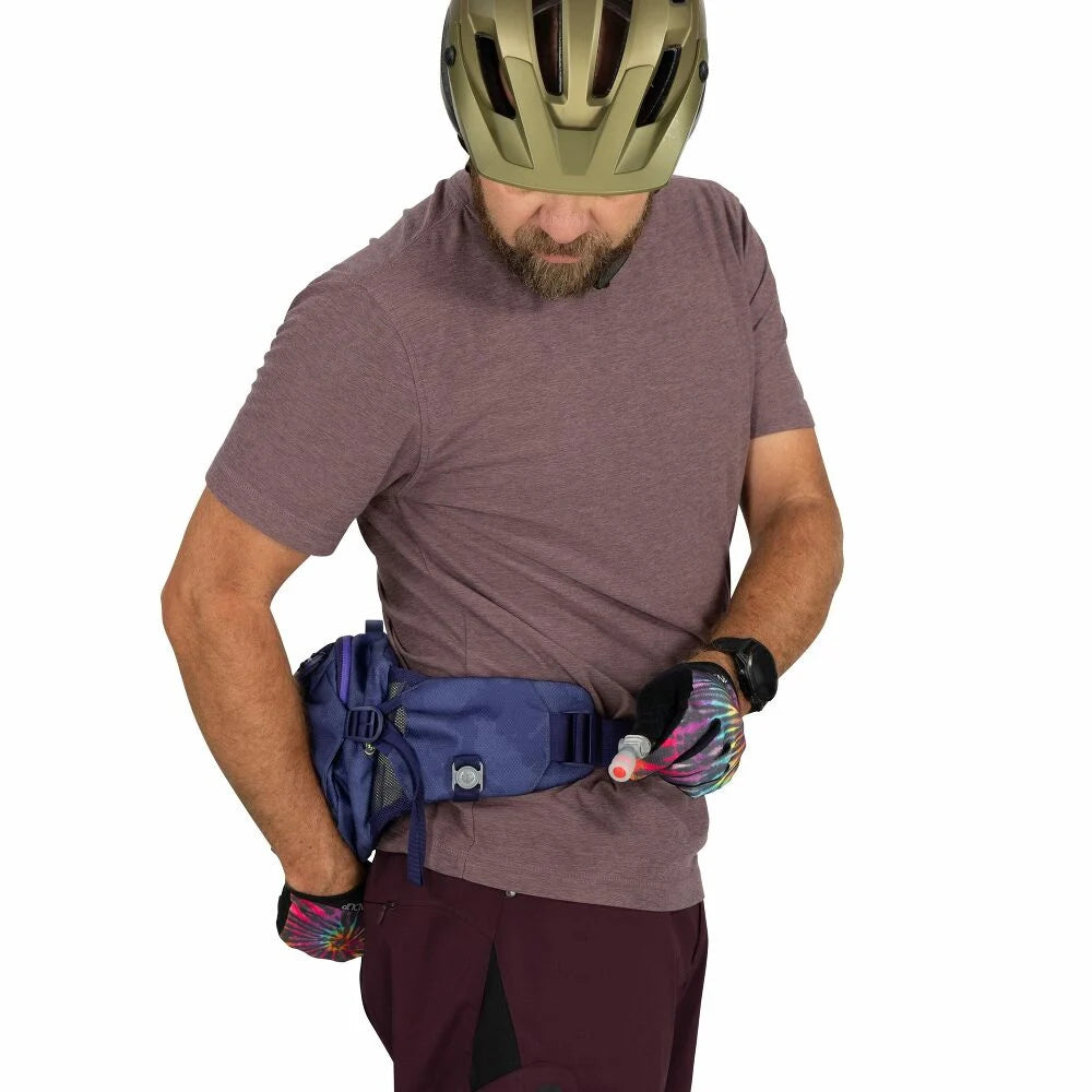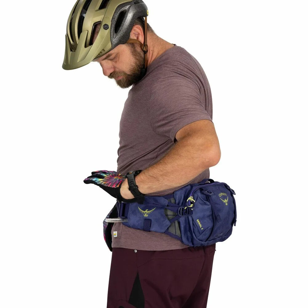 The Osprey Seral 4 combines minimalist design with practical hydration storage for cyclists who demand lightweight performance. This compact lumbar pack features a dedicated 1.5L reservoir pocket that keeps water within arm's reach during rides. The streamlined four-liter capacity sits close to your body for balanced weight distribution, reducing fatigue on longer outings. Multiple attachment points accommodate bike tools, spare tubes, and essentials without bulk. Breathable back panel and adjustable straps ensure comfort whether you're tackling singletrack or cruising pavement. Ideal for day rides and short adventures where every ounce counts.
