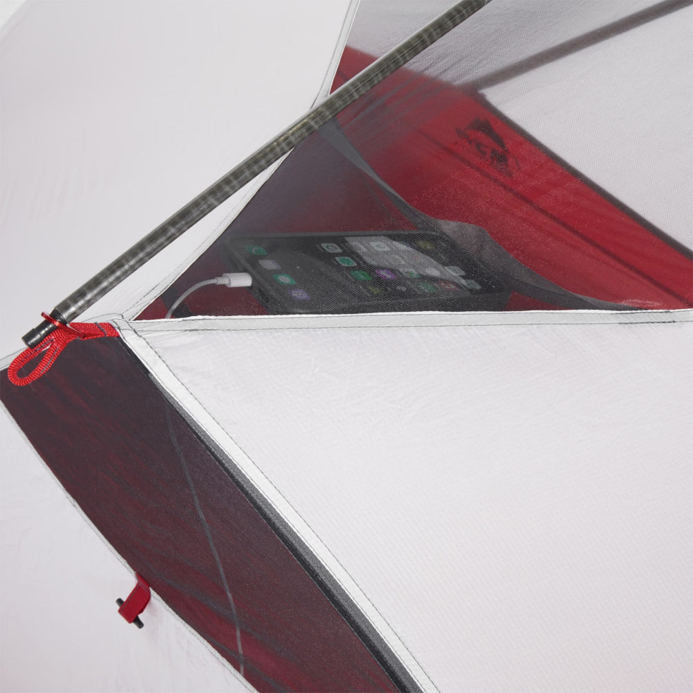 Stop compromising between comfort and weight. Redesigned and lighter than ever, MSR's best-selling 3-season Hubba Hubba is one of the most livable backpacking tents available. You will love the generous 40 inches (1.01 m) of headroom and the true rectangular floor (no taper) that is spacious enough for all your gear. The tent body is a blend of mesh and solid fabric that provides airflow, privacy and weather protection. No-curve tent doors feature zippers that are easy to use with one hand. They also zip closed to a single point so you always know where to open the door, even in the dark. New tech-friendly pockets feature cable ports at the corners for headphone and charging cords. Overhead gear loft pockets are perfect for headlamps, sunglasses and other quick-access items. The symmetrical tent design means you can set up the Hubba faster than you thought possible, particularly handy for those unexpected rainstorms. Virtually unbreakable Easton® Syclone™ poles, a DuraShield™ waterproof coating and taped seams keep the Hubba stable and dry so you can ride out the weather in comfort. The rainfly features large vestibules for storing any gear you don't want inside. Easy in-and-out vestibule doors feature StayDry™ rain gutters to keep running water off you and your gear, while kickstand vents maximize airflow.