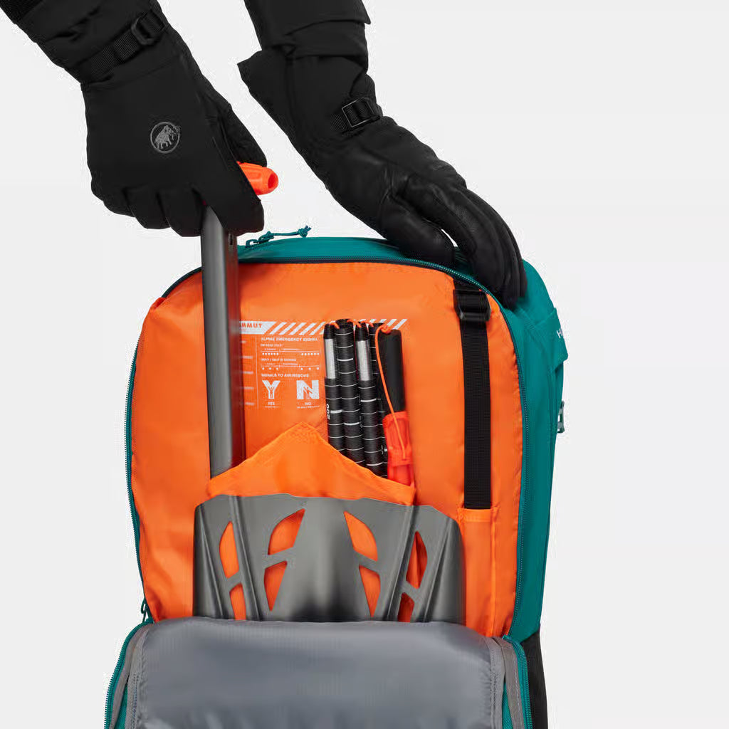 - Front pocket for avalanche safety equipment