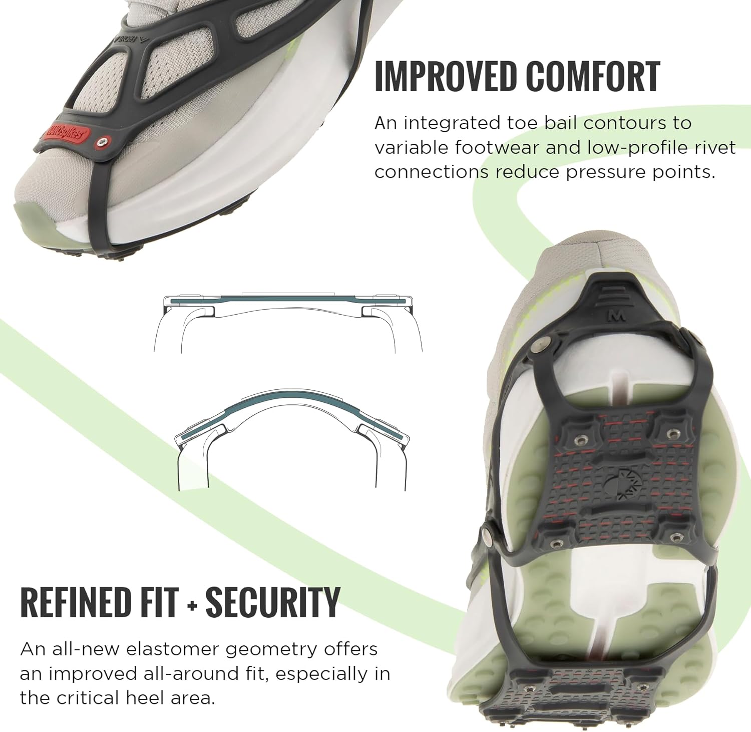 - Improved Heel Tab - Simplifies putting on and taking off NANOspikes® traction.
