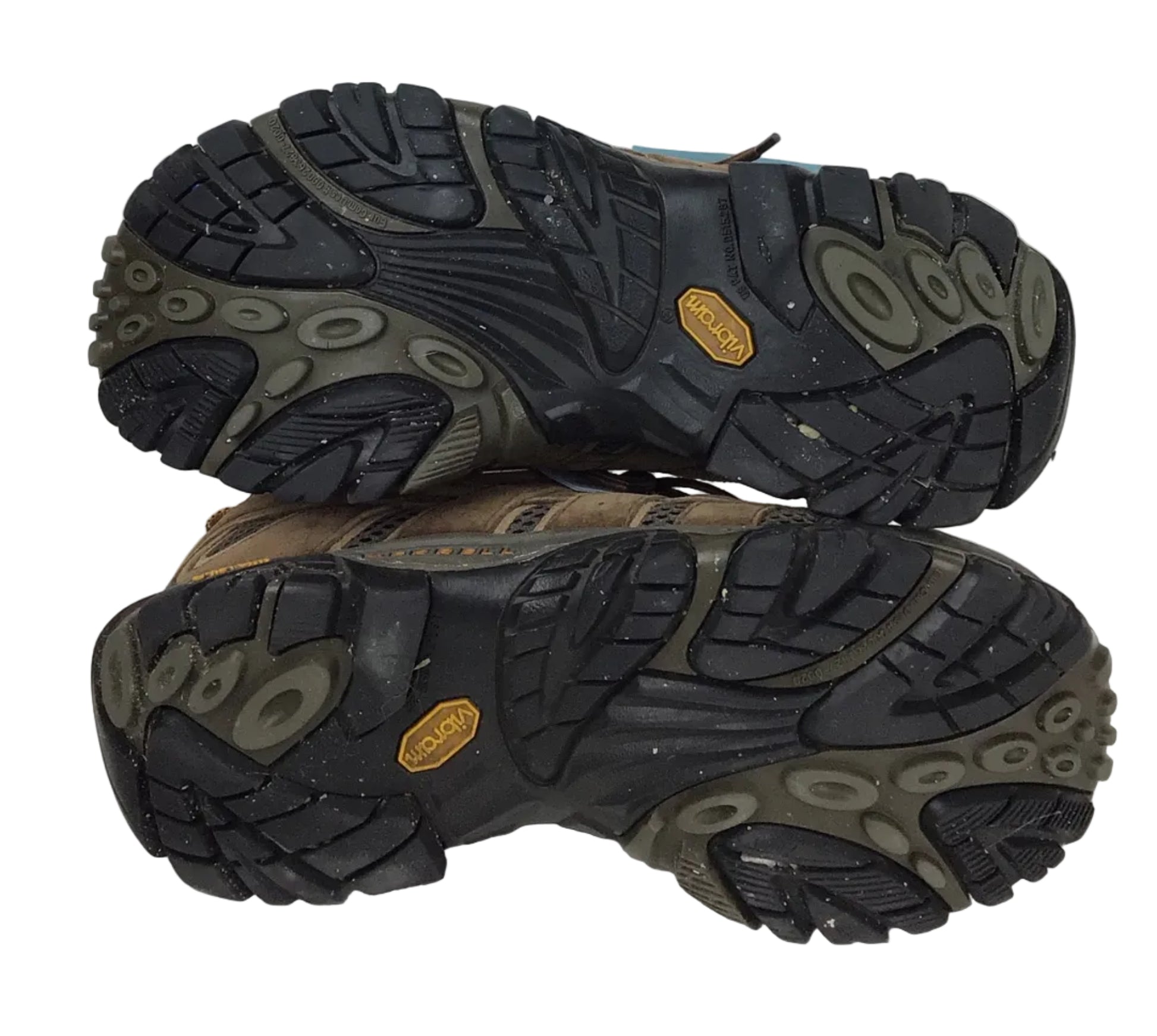 These gently used Merrell hiking boots show minimal wear—just some light discoloration and a tiny scuff on one sole. The breathable design keeps feet cool and dry on the trail. Perfect for adventurers who love a good deal and don't mind a boot with a story.