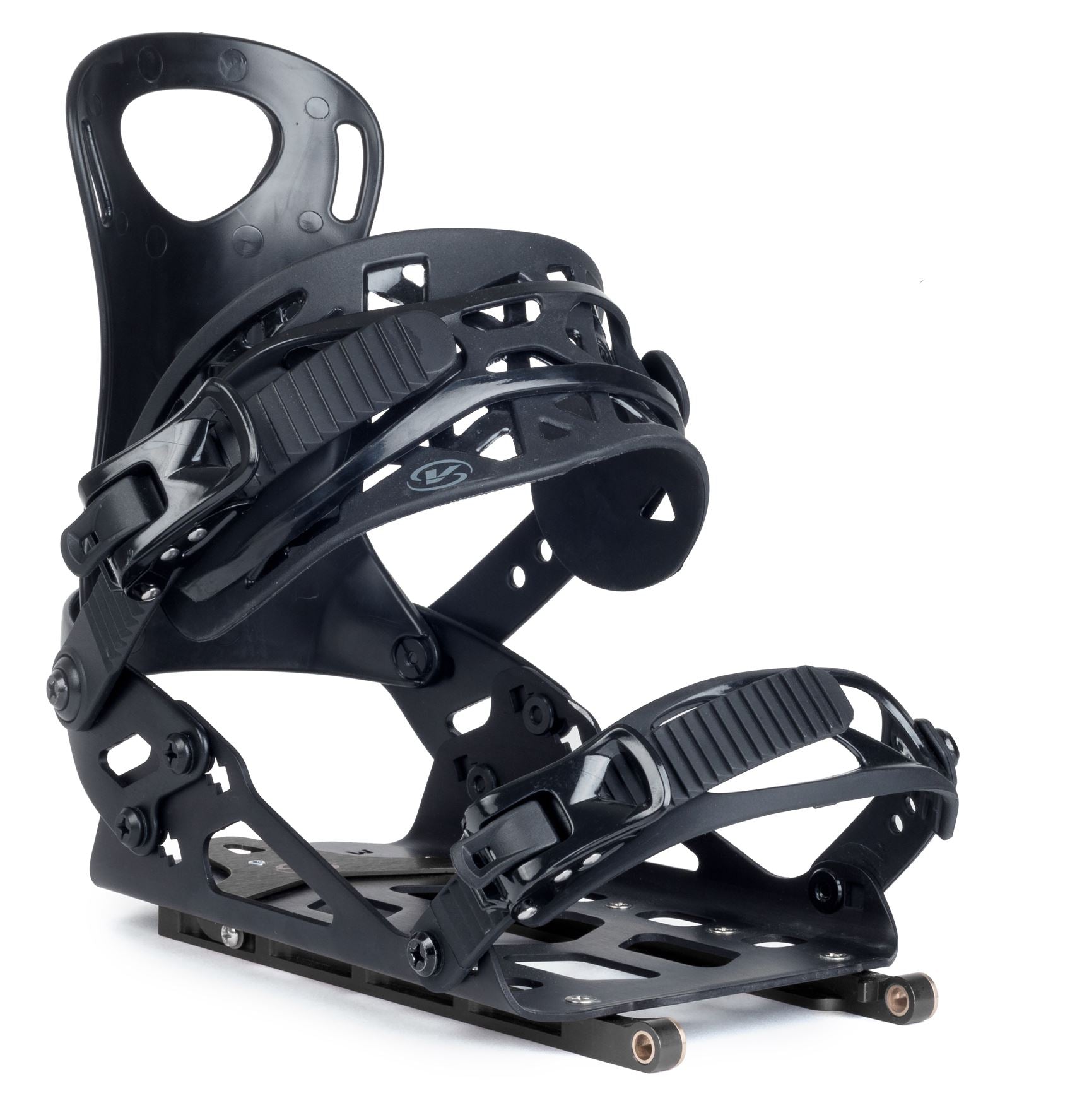 The Voile Light Speed Binding'll live up to its name and then some. All-mountain split boarders can expect simple-to-use and adjustable means for navigating backcountry gems. While lightweight for touring at 3 pounds, there's durability found in the Lightspeed's T6-tempered rails that snap securely to a precision-formed apparatus of stainless steel and Super-Tough nylon. In touring mode, the binding's complete with hinges that'll lock the Light Speed in place with a simple rotation. If you need the kind of surefootedness that sidestepping, traversing ridgelines, or cruising rolling terrain requires, engage the Heel Lock so that you get a customized forward lean. When you're ready to ride, slide the Lightspeed onto your board's pucks and keep em' locked with the simple clamp of a heelside locking mechanism. Expect a binding built to keep momentum flowing from one mode of transpo to the next. EZ PZ. .........