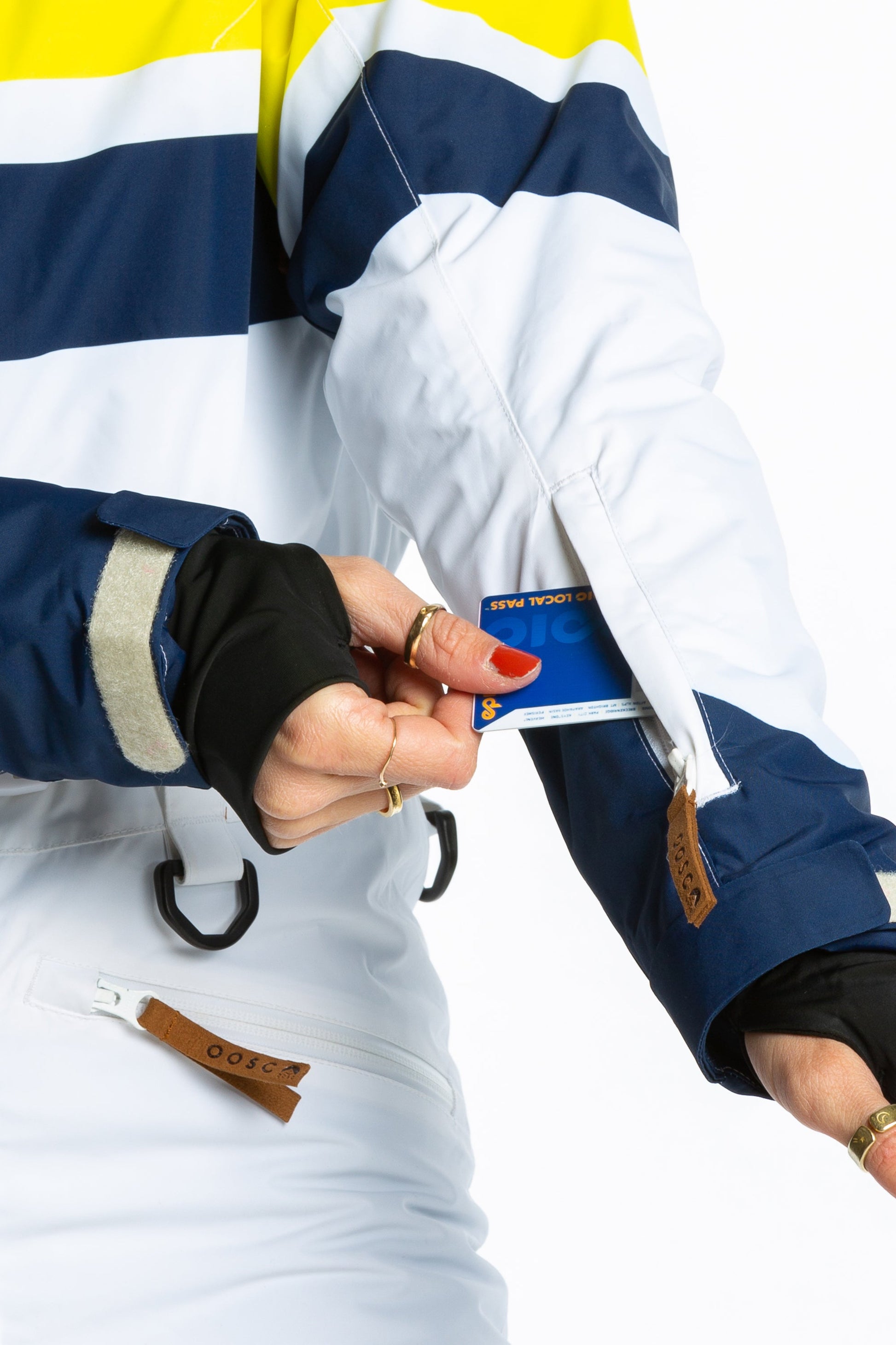 The Mogul Maniac | White Retro Striped Women's One Piece Ski Suit