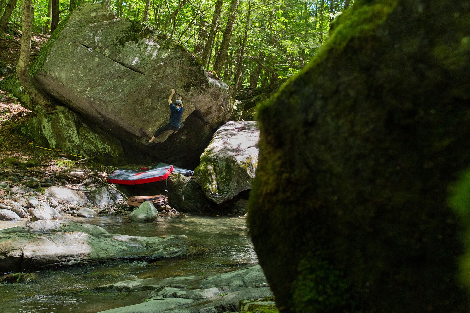 It might be news to some folks, but mother nature doesn't really care if the landing to your first boulder problem is flat. Even if there is a flat landing, the ground is unforgiving even when falling from just a few feet, not to mention any small rocks or roots that could easily twist an ankle and end your day. A crash pad is super vital. It gives you a firm but soft landing when you inevitably miss that hold.
