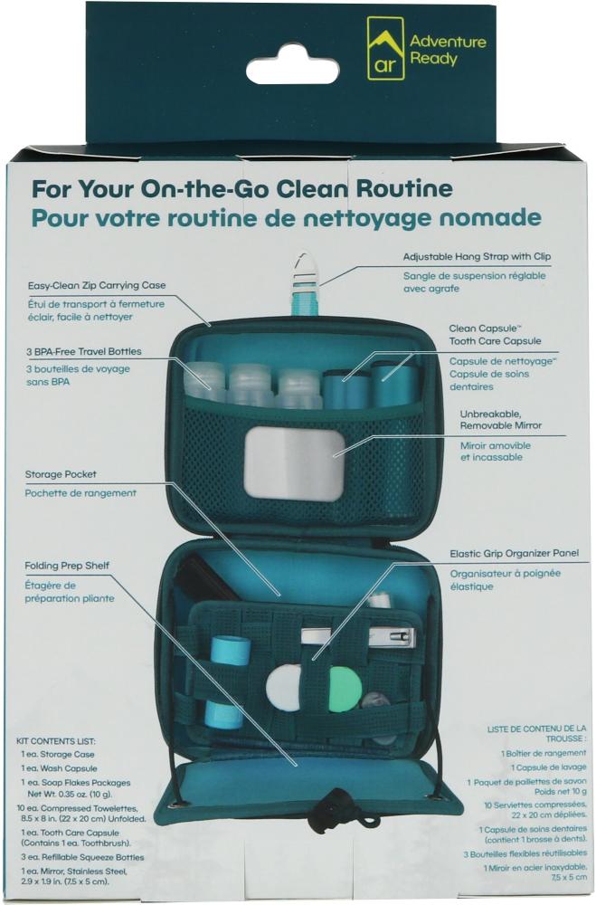 The Adventure Toiletry Kit helps you stay clean while out camping or exploring the backcountry with biodegradable soap flakes and water-activated compressed towelettes. Dedicated storage for your tooth care products and reusable squeeze bottles lets you bring your home amenities along anywhere you go.