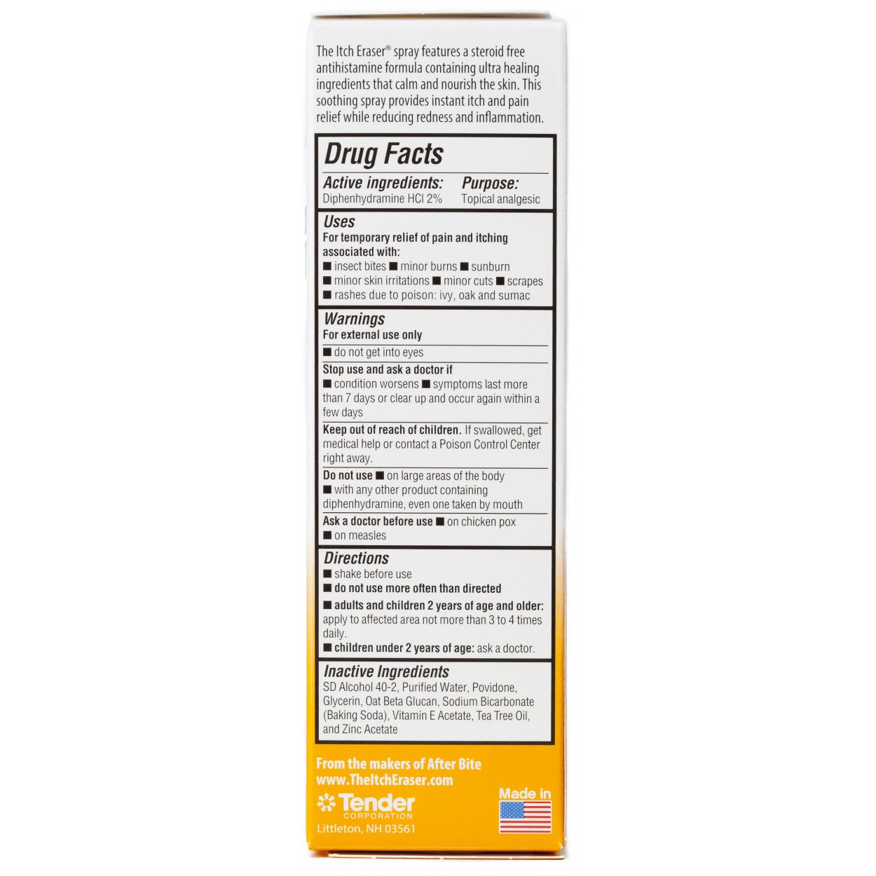 The Itch Eraser® Spray featuring antihistamine and zinc acetate is a steroid free anti-itch and skin care spray for instant itch relief. This extra strength spray formula stops the itch and heals the skin with ultra healing ingredients such vitamin E, tea tree oil, oat complex, and baking soda. It is perfect to treat allergic reactions; poison ivy, oak and sumac; hives; rashes and redness; insect bites; sunburns; and minor cuts and scrapes. Use The Itch Eraser and don't let itches ruin your outdoor family fun!