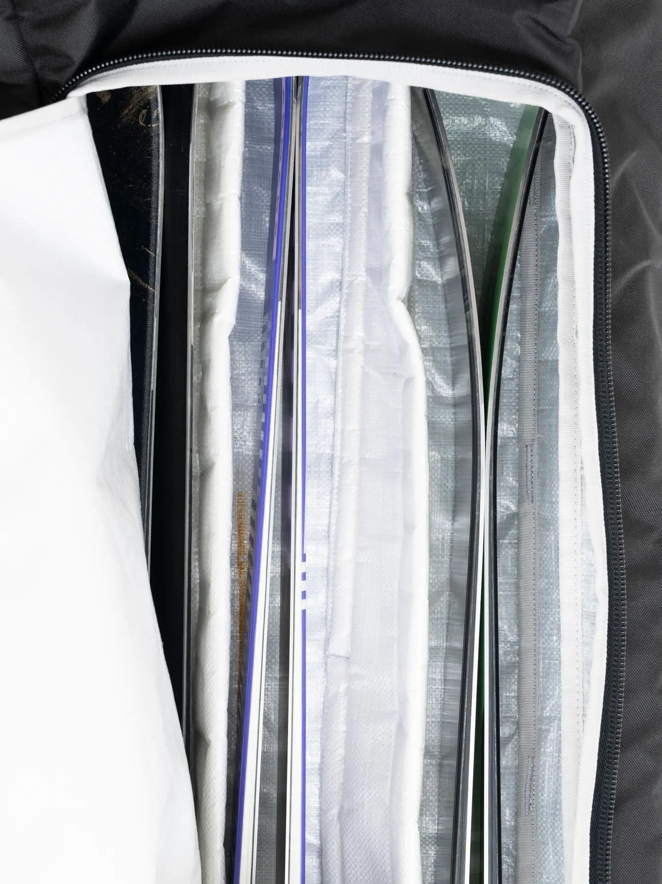The Stibbs is a durable rolling ski bag that accommodates up to four pairs of skis with room to spare. The Stibbs grants peace of mind by wrapping your gear in durable materials to withstand every kind of travel.
