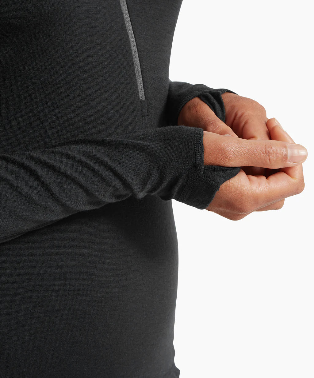 The women's Boulder 125 1/4 zip offers effortless performance and low-profile thermoregulation, thanks to Artilect's A/SYS-1 technology. The ultra-light Nuyarn 125 merino fabric is complimented by strategically placed eyelet knit for ventilation where you need it.