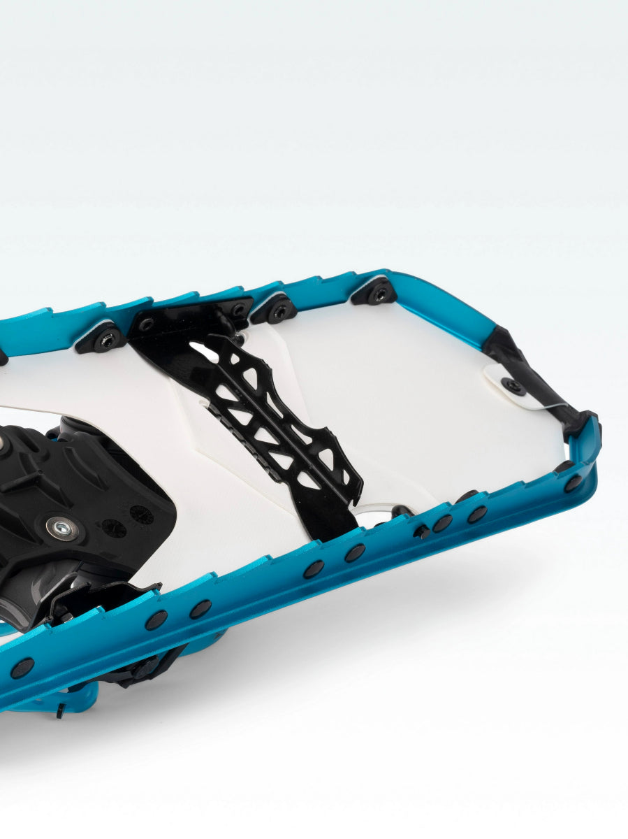 - Aluminum Traction Rails: Lightweight 6061 Al Traction Rails run 2/3 length of snowshoe providing stability and control in all conditions, while still allowing tail to flex for natural gate.