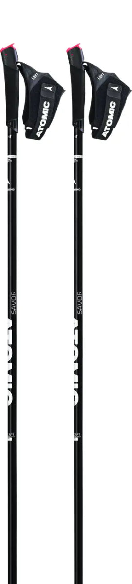 The Atomic Savor QRS is designed to do what all good touring gear should do: save energy. High-grade aluminum makes it lightweight and stiff for easy, efficient movement. It has a Power Strap Lite that helps you transfer power into the snow when you're poling. This strap also comes with QRS, Atomic's Quick Release System, which instantly releases your strap when you push the release button – for easy and convenient handling.