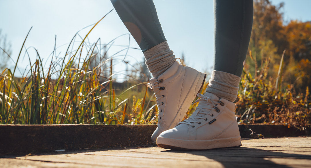 Looks like a classic hiking boot but feels light and flexible like a street shoe.