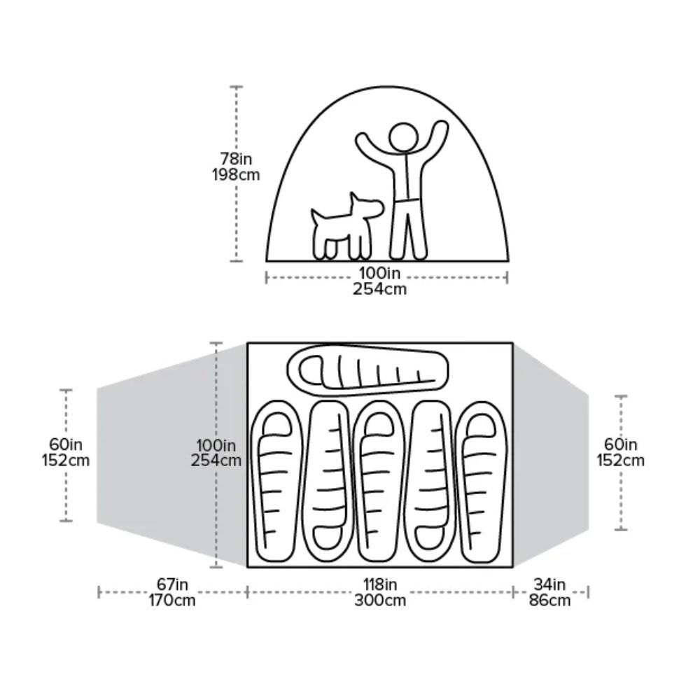 The Bunk House 6 is a spacious family or group tent, full-featured to keep you comfortable in the backcountry. With ample interior space and storage, a full coverage rainfly, and a backpack-style carry bag, it inspires 'tent-envy' at every campsite.