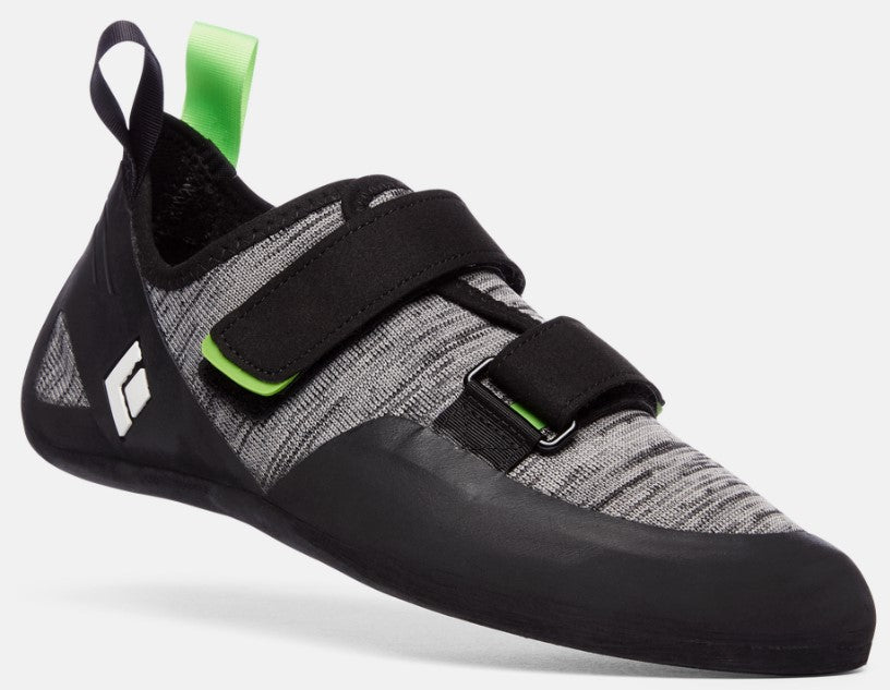 Designed to provide unparalleled comfort for all day cragging and gym sessions, the Momentum is a two-strap Velcro shoe that combines innovative technology with a classic, flat-last design to create an entry-level shoe that excels in performance. With an upper fabric that consists entirely of Black Diamond's Engineered Knit Technology, the Momentum provides stretch where you need it, support where it matters and all around exceptional breathability. They've also added a micro-fiber liner to the front of the shoe to minimize stretch and maximize comfort. The Momentum's durable rubber is unique in that it's molded, inspired by the way carabiners are forged, versus cut from one sheet of rubber. This is Black Diamond's engineered solution to optimize the shoe's rubber and rands for weight, consistency and comfort. Built for all-day comfort on moderate routes, boulders or gym sessions, the Momentum features a soft-flex midsole for sensitivity and is the perfect entry level climbing shoe. These shoes run small - our climbing experts recommend up to one-half size above your street size. If you have any questions about sizing, please contact us via LiveChat or call 888-547-4327.