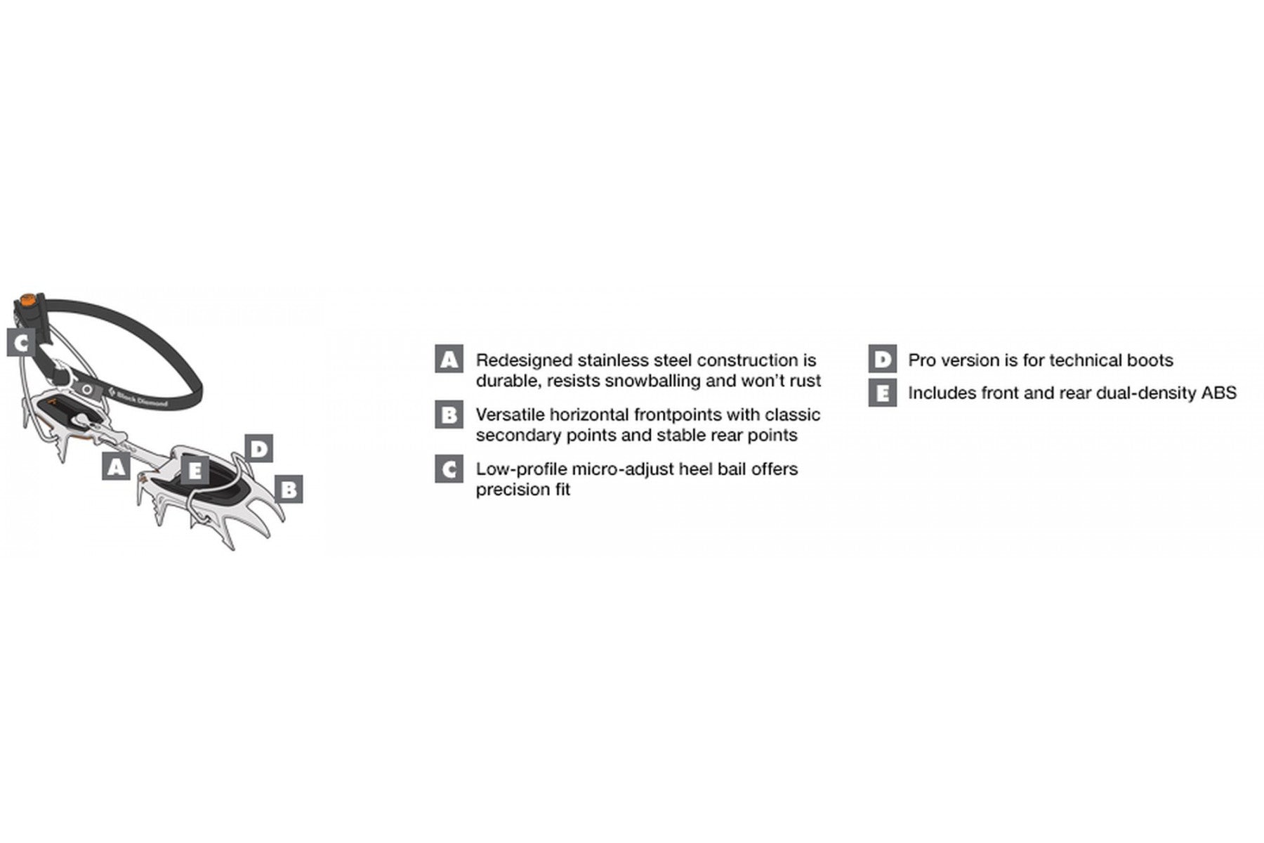 - Pro version is for technical boots; Clip version is for mountain boots without a toe welt; Strap version is for non-technical footwear