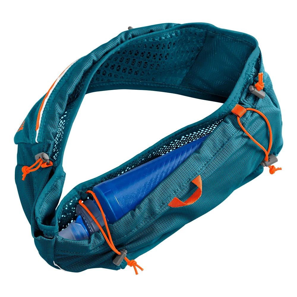 Go minimal! Camelbak's lightest most minimal hydration belt stores a 17-oz Quick Stow flask that molds to the shape of your body. The 3D mesh material stays light and breathable on even the hottest runs, and the extra stretch pocket keeps gels, keys and cards safely tucked away. Plus, you won't be stuck carrying a big empty bottle at the end of your run—once the flask is empty, just fold it up and tuck it away. It even includes an integrated trekking pole carry for the more technical runs.