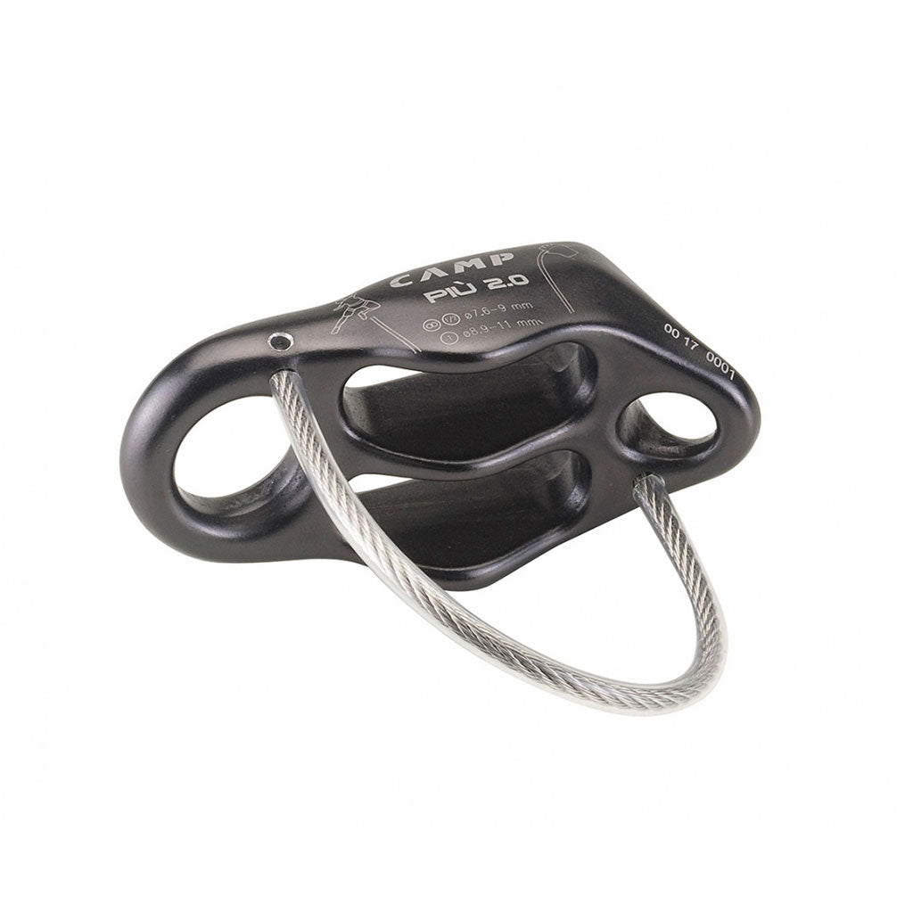 The Più 2.0 has been designed to deliver optimal performance with the new generation of skinny ropes that have gained popularity in recent years. Using a variable notched design with smooth teeth on the brake side of the device along with narrower slots for the rope, the Piu 2.0 locks onto skinny ropes with more friction than other tube-style devices. Other features include the ability to set up the device in auto-block mode for belaying two seconds, a large rigging hole that allows a locking carabiner to rotate all the way through, a specially shaped hole that captures the nose of a keylock carabiner (specifically designed for use with the HMS Nitro and HMS Compact Lock carabiners) which can then be used as a lever for releasing tension if a second locks the device in auto-block mode, and a diagonal cable that prevents the rope from rubbing and jamming.