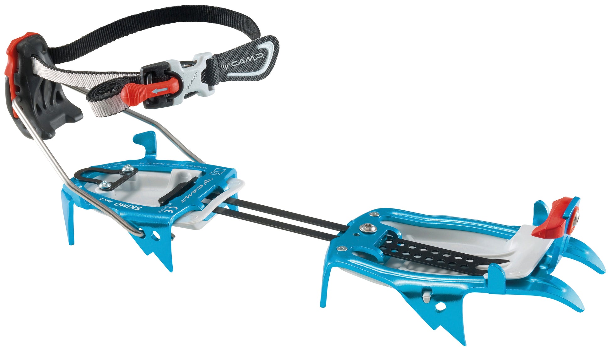 The Skimo Race is a style of crampon that has been purpose-built for competitive ski mountaineering. Every detail has been optimized for lightweight and speed. The Skimo Race features the T-Stop toe system combined with a traditional snap on heel bail for fast and secure attachment to the boot. The micro-adjustable linking bar with large and small range settings delivers a precise fit for all boot lengths.
