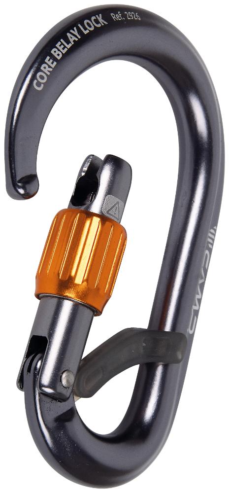 The Core Belay Lock carabiner is a lightweight rappel and belay carabiner with screw gate closure. The carabiner's unique shape increases the gate opening and positions ropes for a smooth belay/rappel experience.