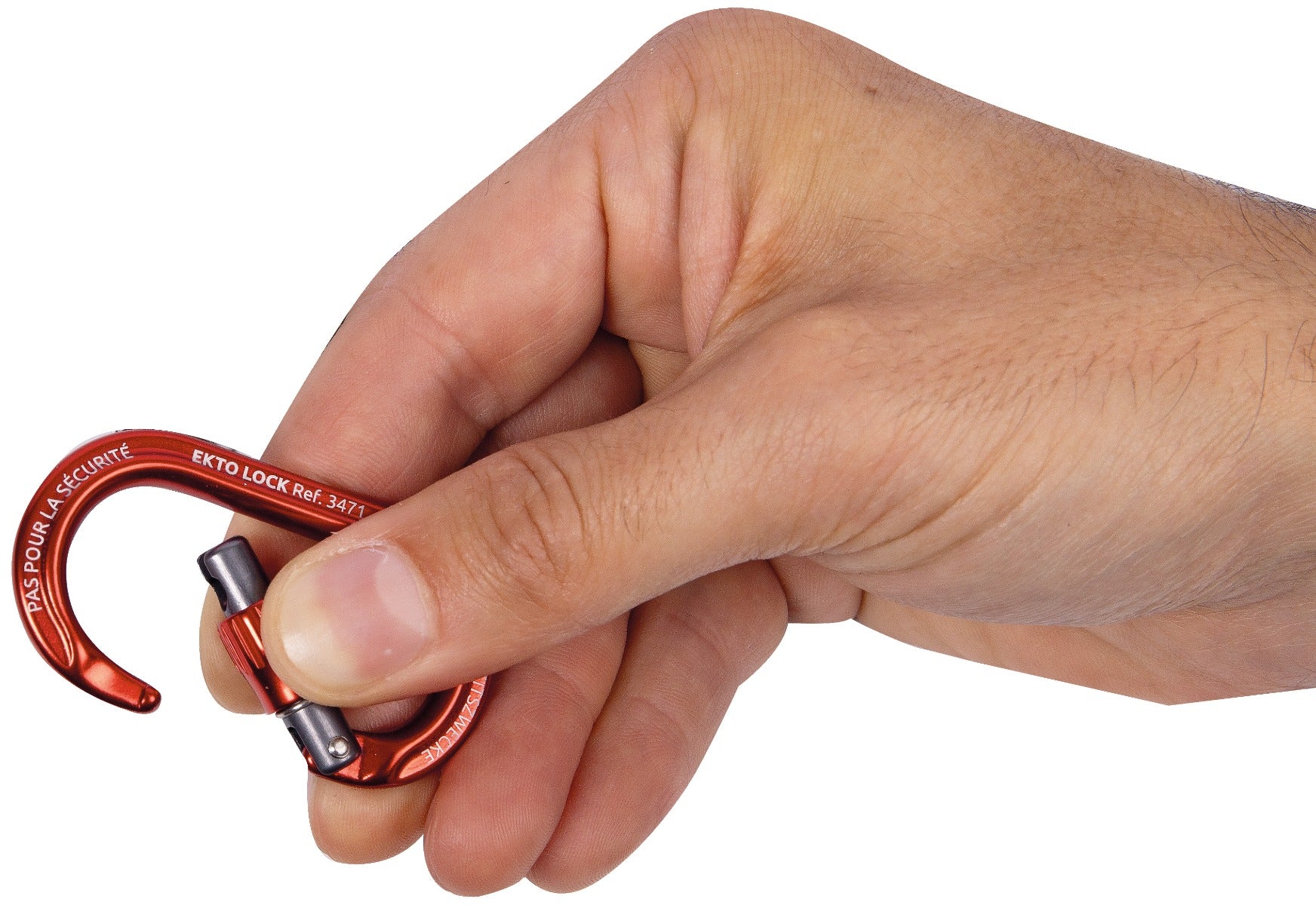 The Ekto is an carabiner is a small accessory carabiner with professional-grade durability and performance. Pictured in the reference image is the Ekto Lock - featuring a lock closure - included to indicate the carabiner's size
