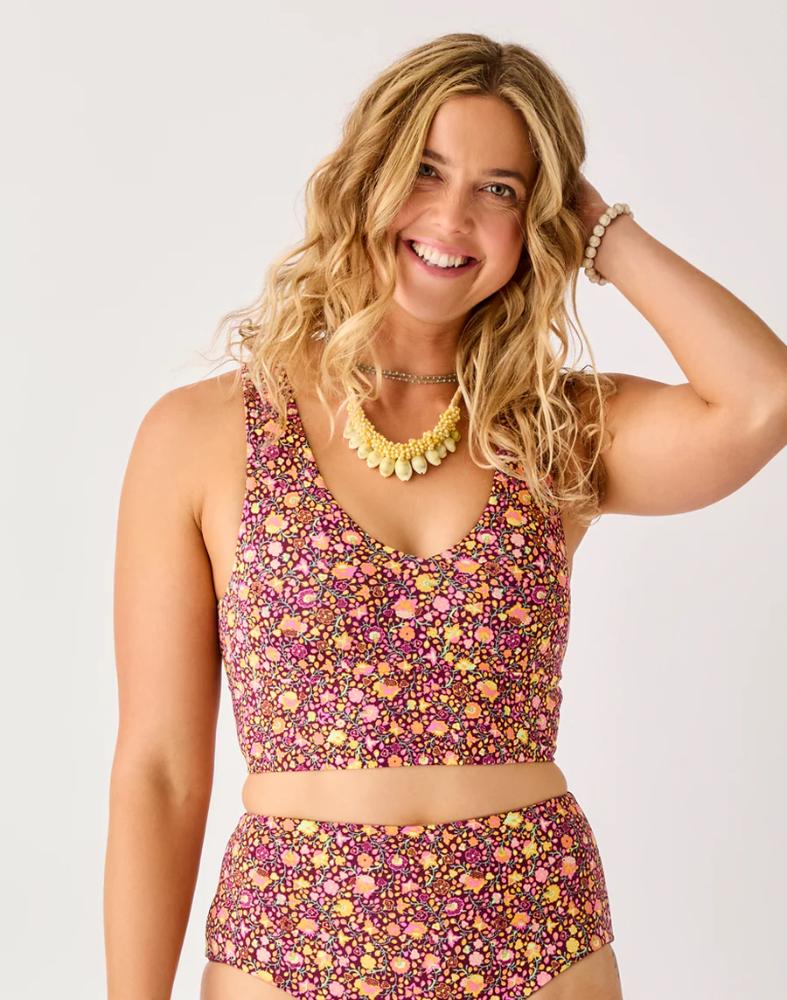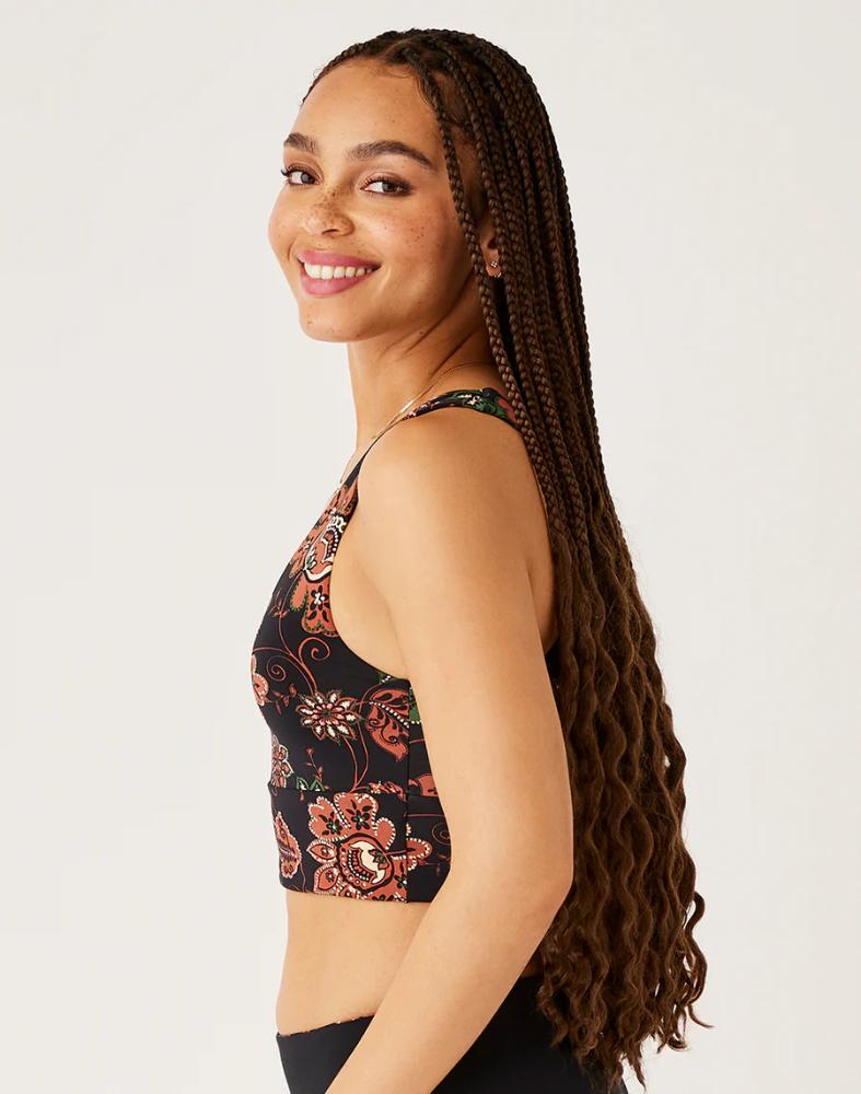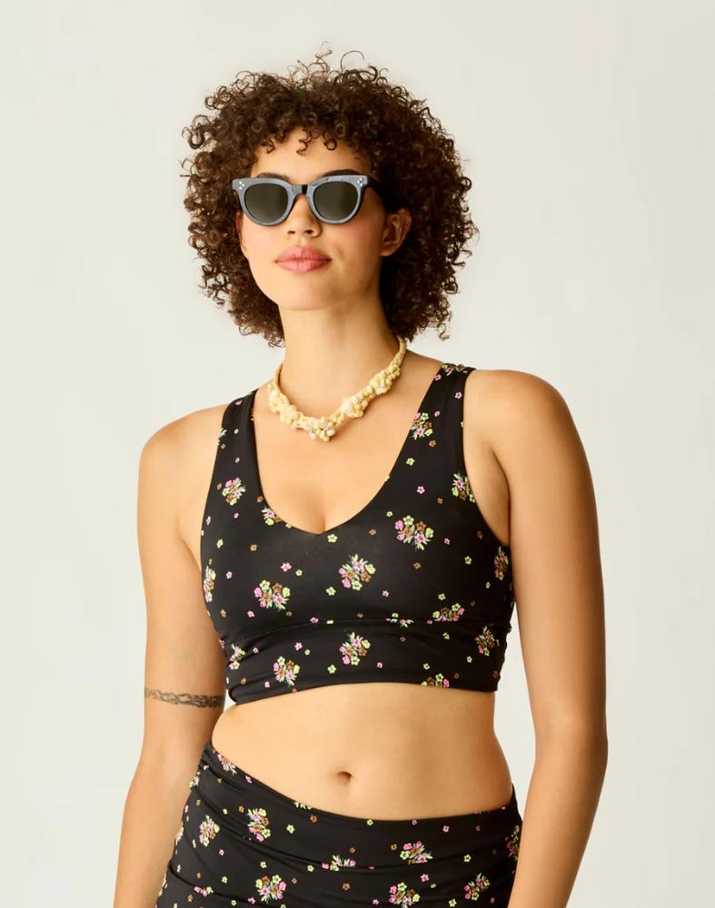 The Tofino's longline tank silhouette and V-neck front afford serious support and freedom of motion, all while looking quite cute doing it.