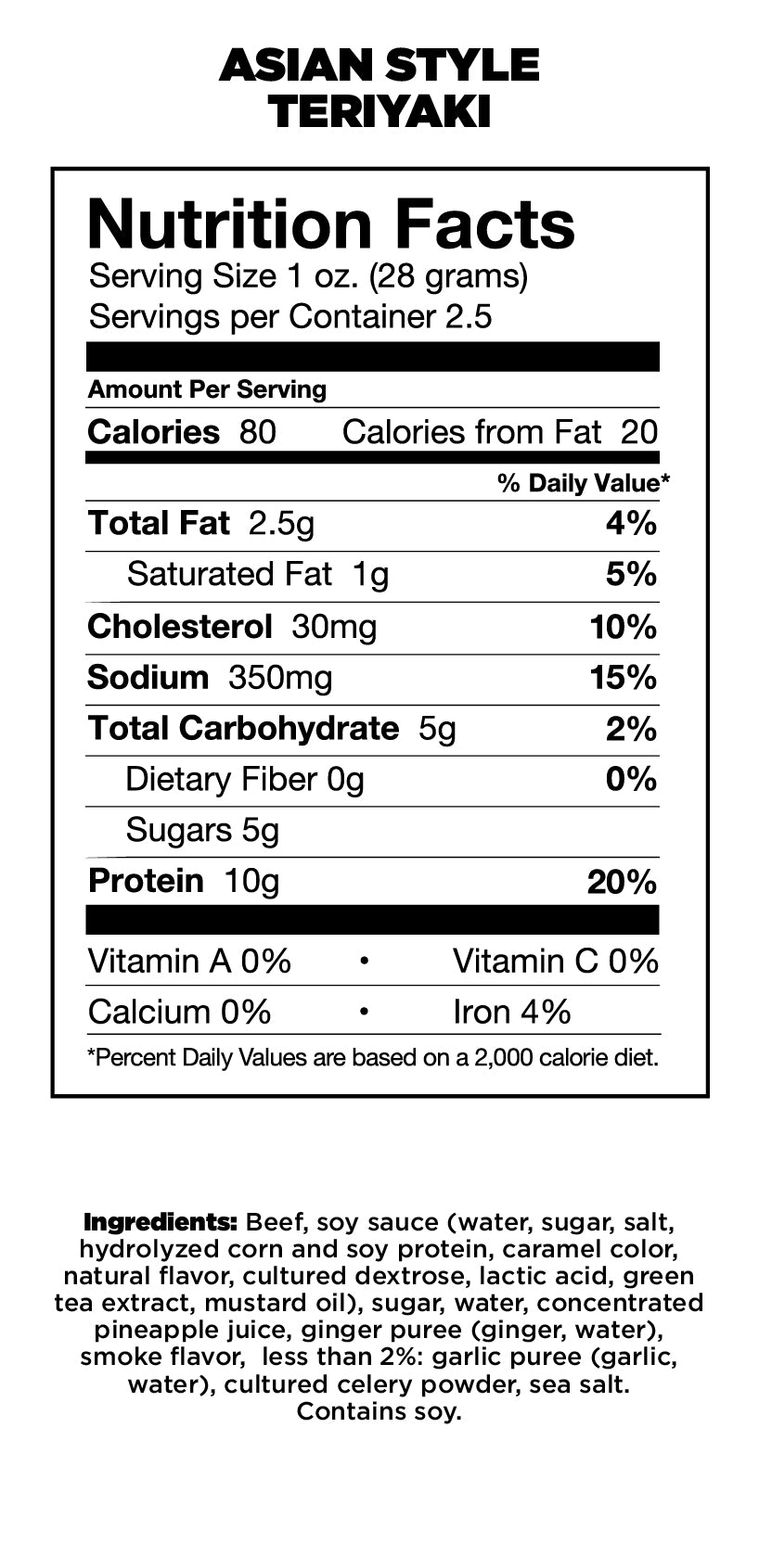 Chef's Cut Jerky - Steak Asian Style Teriyaki Jerky 2.5oz - Teriyaki