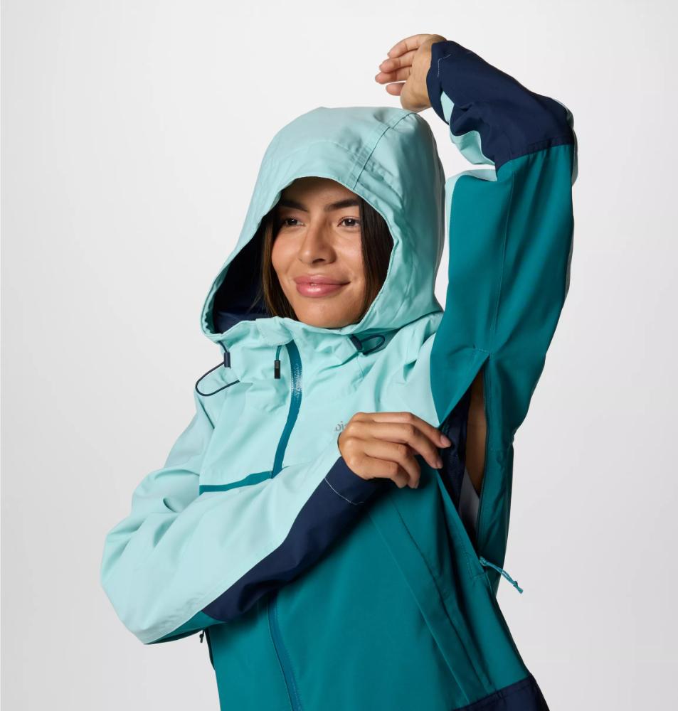 The women's Boulder Falls rain jacket is made with fully seamed seals, while remaining breathable, for all day waterproof confidence and comfort.