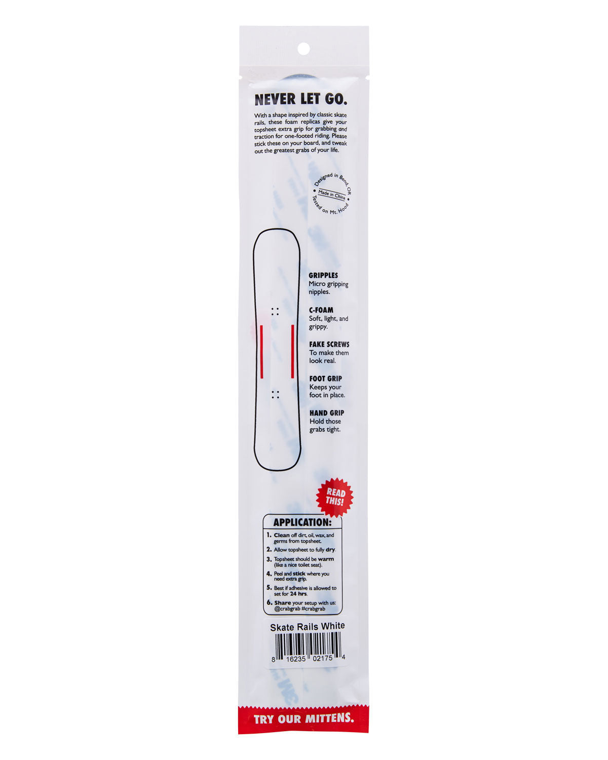 Crab Grab's Skate Rails are shaped, designed, and inspired by the classic skateboard rails of the 1980's, these peel n' stick foam rails offer your topsheet extra grip for grabbing, and traction for one-footed riding. We hope you stick these on your board, send it off a snow covered launch ramp, and tweak out the greatest grabs of your life.