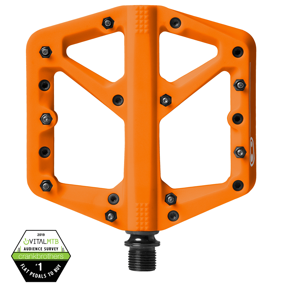 Large and in charge, the Crankbrothers Stamp 1 bike pedal provides an entry-level composite platform for optimal shoe/pedal interface.