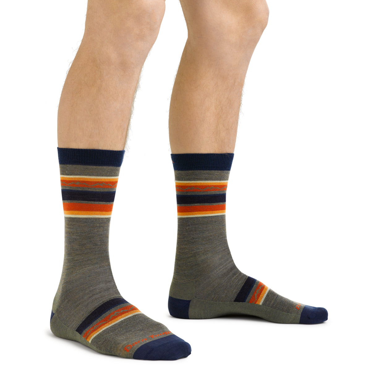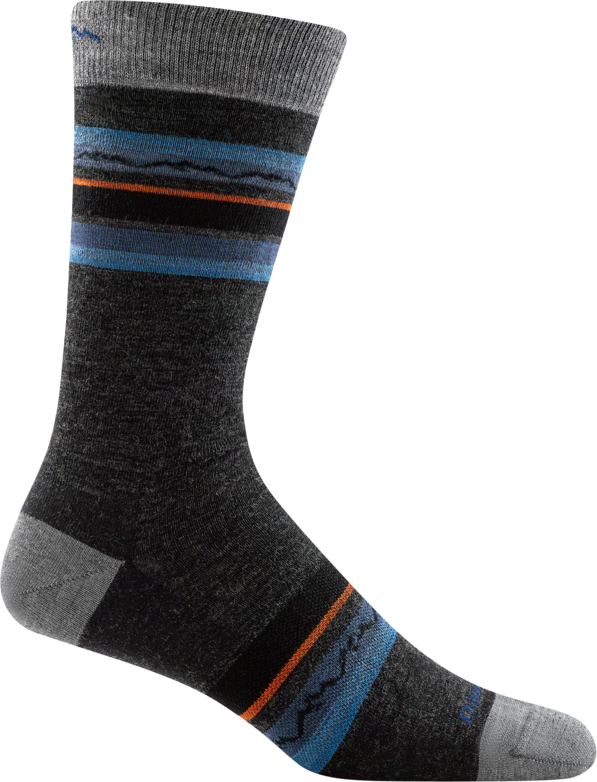 Stripes with a mountain range give the Whetstone its work up front, party in the back mentality. Climate-controlling, lightweight Merino knit, plus guaranteed for life durability in this every day sock, is why Darn Tough named it after the road their mill is on.