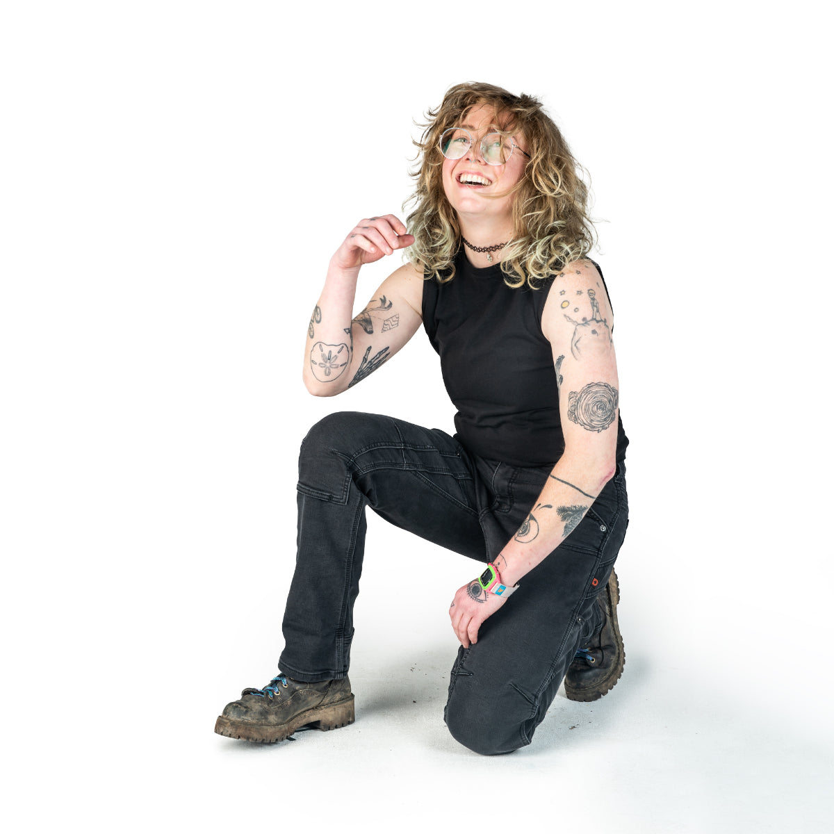 The Britt Utility in grey stretch canvas is Dovetail's new straight-leg fit, relaxed through the hip and leg, with room for boots. This high-performance pant is for the woman who wants a gender-neutral pant on the job. Offered in Dovetail's own custom Dovetail 10 oz stretch duck canvas, proven to be more durable than any other duck canvas on the market, this pant is no mere working stiff. Its gusseted crotch, double front, extra pockets, and articulated knees mean that, just like you, this work pant does more. So yeah, of course the guys are jealous. Kate, the model seen from the waist down without tools, is wearing a size 6/32" inseam. She is 5'7" tall and has a 27" waist and a 38" hip. Her natural inseam is 30". Britt, the model seen here with the tools and hat, is wearing a size 2/32" inseam. She is 5'4" tall and has a 28" waist and a 37" hip. Her natural inseam is 31".