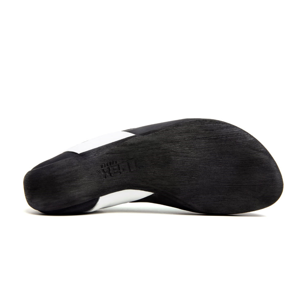 Designed for the climber who needs performance to excel on all types of terrain from moderately overhanging to vertical and off-vertical faces for long periods of time. Evolv's Geshido Lace is built with a single-layer vegan synthetic upper, which will keep the shoe feeling tighter and more powerful. It has a 2-strap hook and loop closure system for easy on and off. Equipped with a 1.2 full-length plastic midsole that will ensure that you have enough power to drive through small features and provide confidence during those technical sequences. The Geshido has a thinner heel rand to yield when the route goes past vertical but is paired with a dark spine heel midsole to ensure that there is plenty of rigidity and power to the toes when needed.