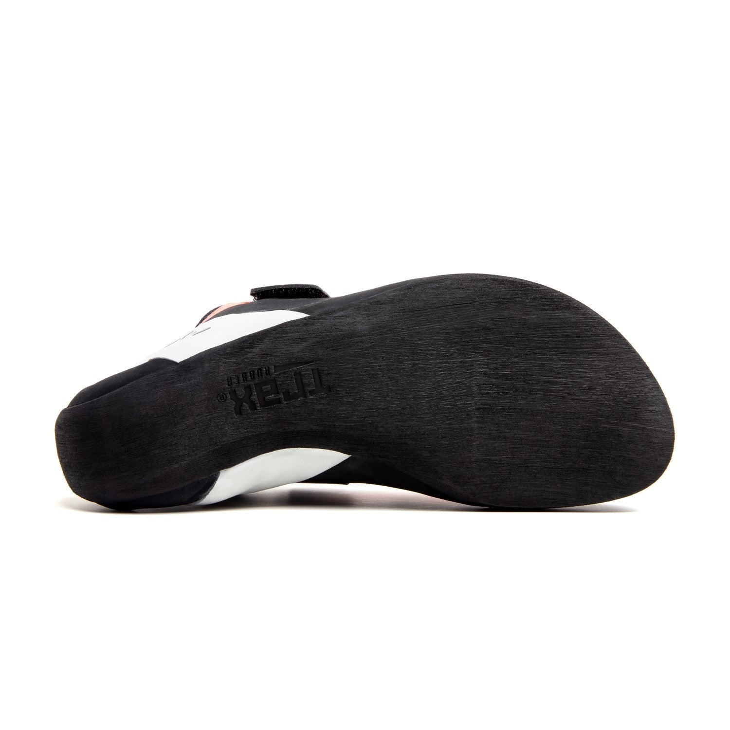 Designed for the climber that needs performance to excel on all types of terrain from moderately overhanging to vertical and off-vertical faces for long periods of time. The Geshido is built with a single later vegan synthetic upper, which will, keep the shoe feeling tighter and more powerful. The Geshido has a 2-strap hook and loop closure system for easy on and off. Equipped with a 1.2 full-length plastic midsole that will ensure that you have enough power to drive through small features and provide confidence during those technical sequences. The Geshido has a thinner heel rand to yield when the route goes past vertical but is paired with a dark spine heel midsole to ensure that there is plenty of rigidity and power to the toes when needed.