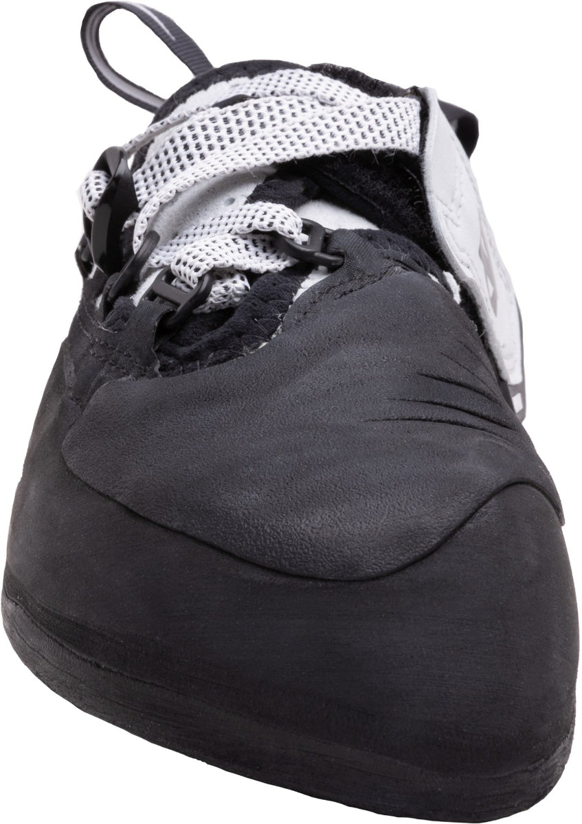 - Downturned and asymmetric toe profile focuses power on your big toes with precision; large toe rubber patches provide maximum toe hooking ability