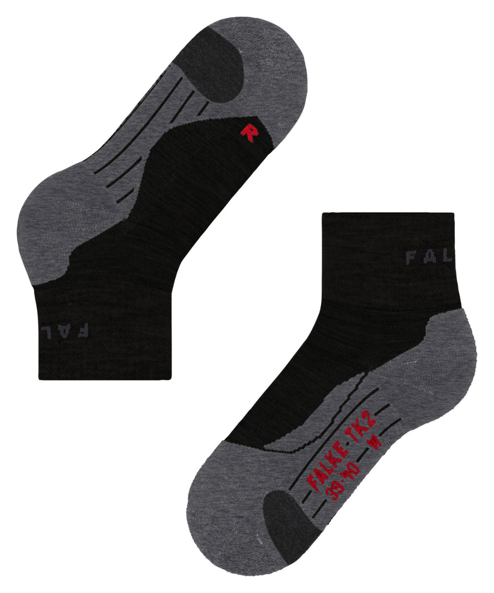 Thanks to their medium cushioning and merino wool mix, these Women's Falke TK2 hiking socks offer great comfort and superior thermal insulation when hiking in easy terrain, whatever the weather. Rapid moisture wicking and the optimized shape guarantee perfect temperature regulation and superior comfort.
