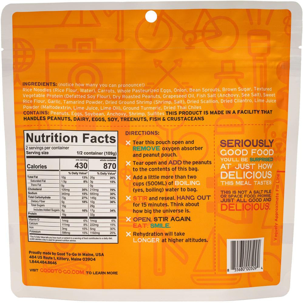 Good To Go's version of this quintessential Thai dish captures the four Thai flavors of sweet, salty, sour and spicy. Traditional Banh Pho rice noodles are served with carrots, bean sprouts and peanuts in a flavorful wild American shrimp sauce. Please Note: Some packaging may look slightly different than what is pictured and may also include instructions in both English and French.