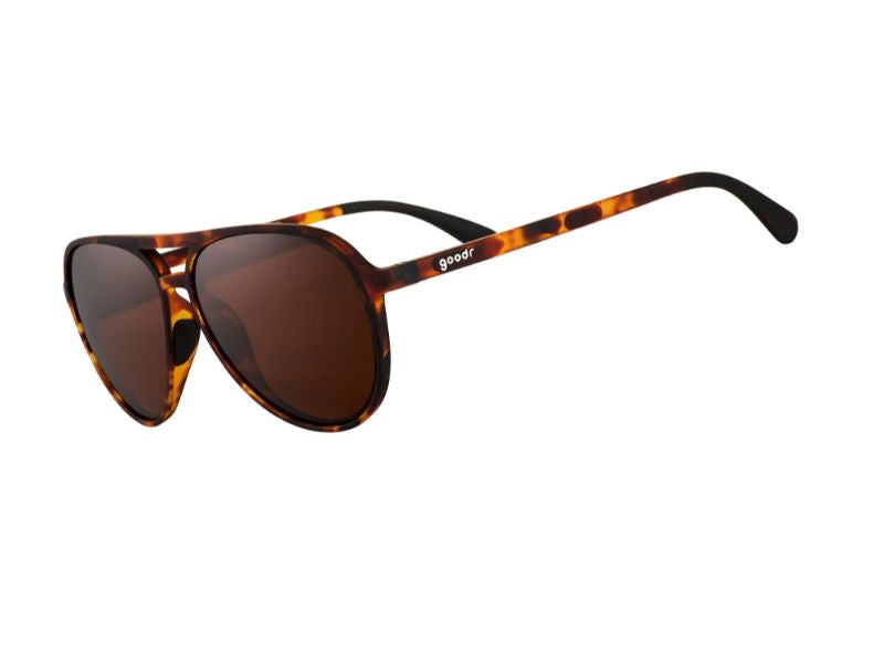 The Goodr Mach Gs are a classic aviator style made to give you the speed if you feel the need. Plus, this smooth, sleek frame means no unsightly imprints on your nose from those weird nose pads on traditional metal aviator frames.