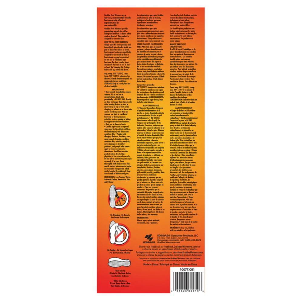 The Grabber Foot Warmers are simple and adhesive solutions to cold, aching feet. Simply open the package, slip them into the bottom of your boots, and let the natural heat do the rest. See sizing information below.