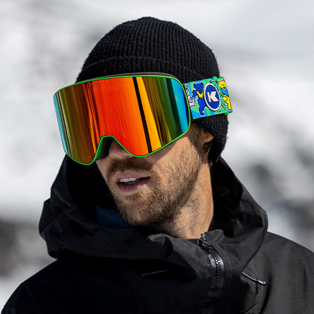 Say hello to the Dancing Bears Slingshots! With this colorful new Grateful Dead x Knockaround collaboration, you can hit the slopes in style and let the whole mountain know you’re a diehard Dead Head. As always, these goggles are durable and designed to take the beating that a righteous day of riding is bound to dish out. Just be prepared to discuss your favorite show in the lift line.