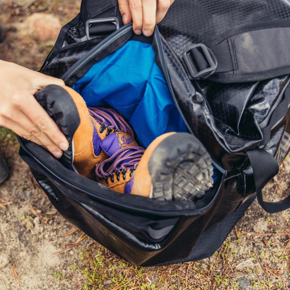 The Alpaca 80 duffel is made from weather resistant recycled material with internal packing solutions to be travel friendly. Wherever you go, the Alpaca 80 will keep you prepared and is comfortable carry along the way.