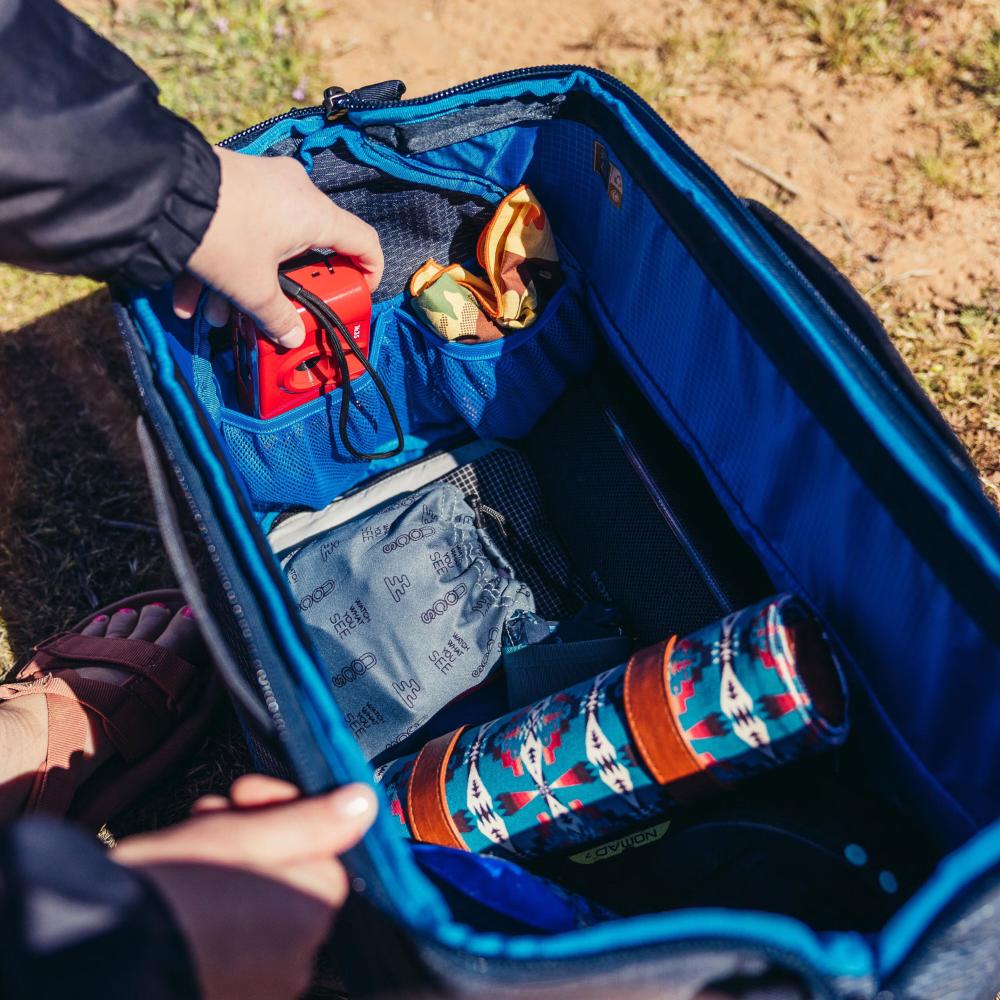 Soft case storage with a framed zippered access opening that pops and stays open, giving wide open access to the inside. The interior features mesh pockets with a large padded main compartment designed to suit your gear organization needs. The 25L bag is made to be a versatile gear kit for your adventures, with padded protection and capacity for all your camp electronics such as lanterns, batteries, headlamps, as well as adventure gear no matter your passion.