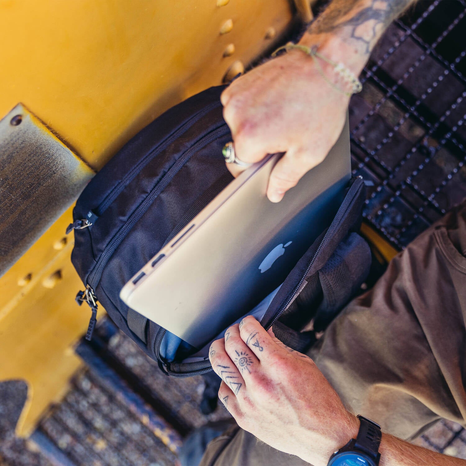 - Pack Body: PVC-Free Coated 210D High Density 66 Nylon & 100% Recycled 450D Polyester with PFC-Free DWR