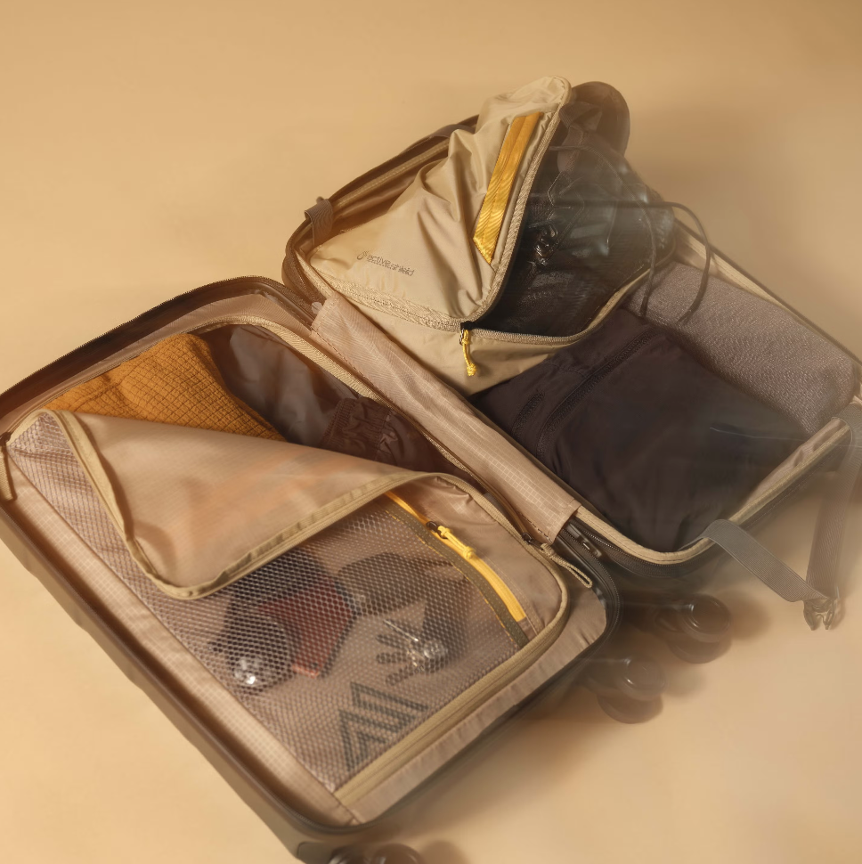 The ideal size luggage for a weekend trip that includes trail running or hiking — just stash dirty gear or shoes in the ActiveShield packing cube.