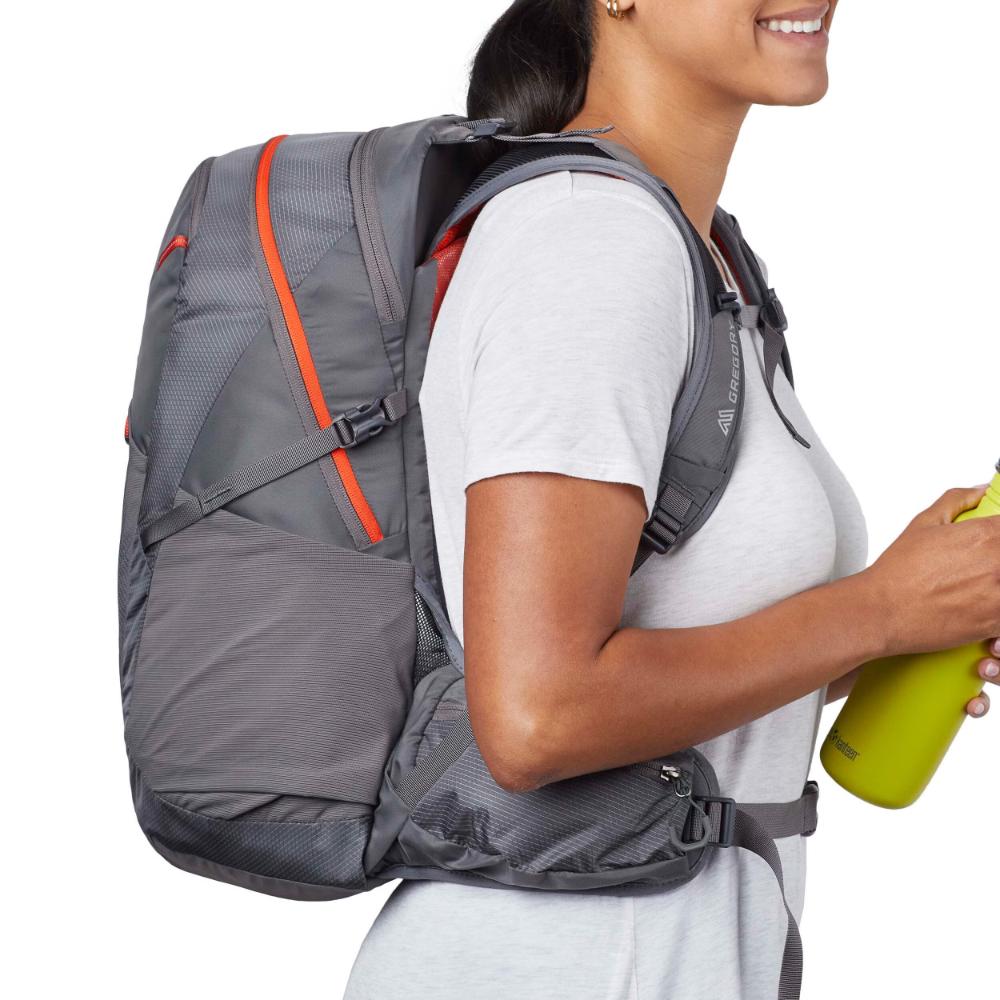 - Independent zippered pocket with SpeedClip hydration hanger, compatible with Gregory's Hydro Reservoirs (reservoir not included).