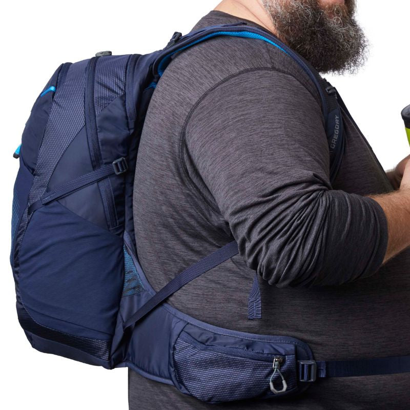 - Independent zippered pocket with SpeedClip hydration hanger, compatible with Gregory's Hydro Reservoirs (reservoir not included).