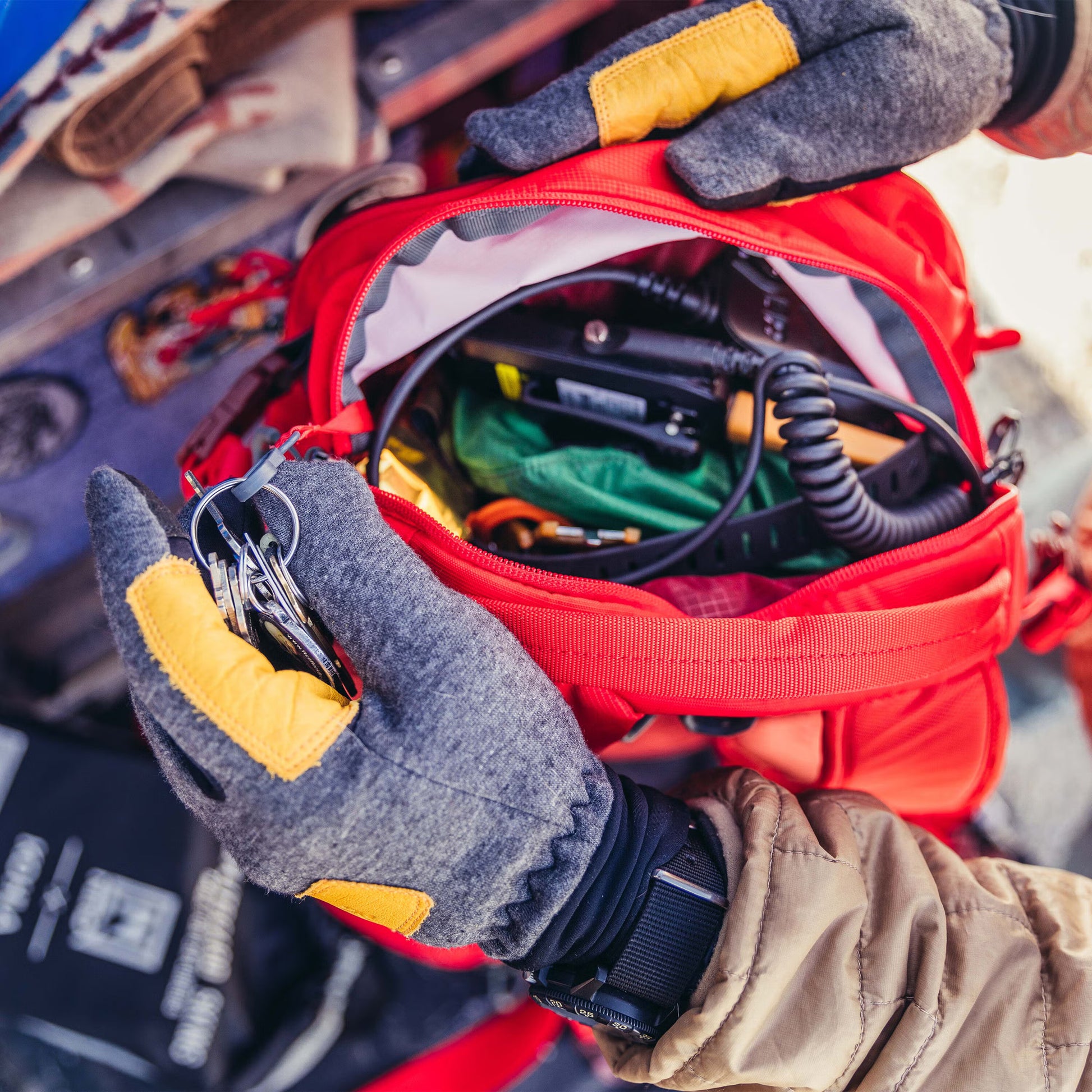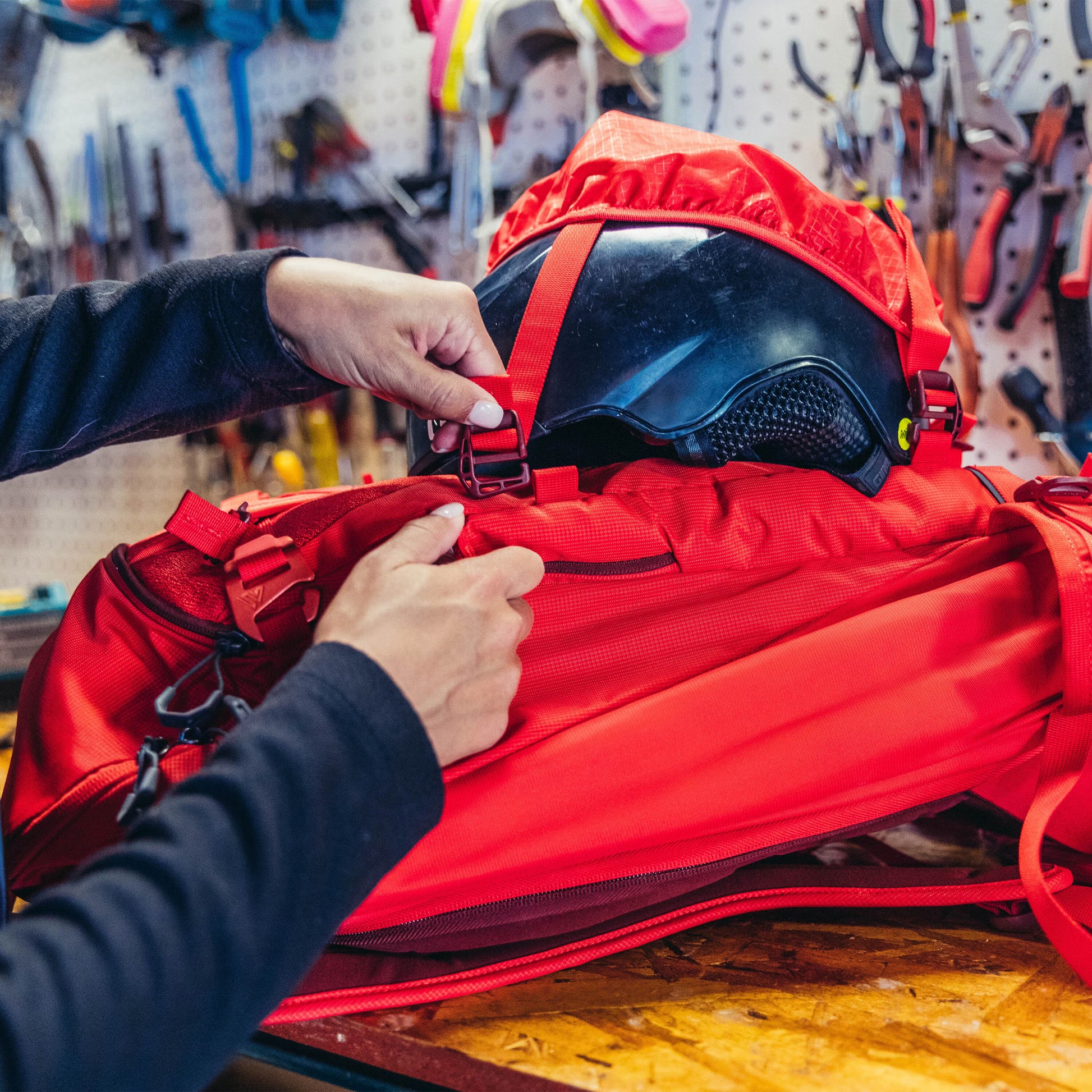 - Helmet Carry System: Deployable helmet carry system for long approaches with easy-to-use hooks