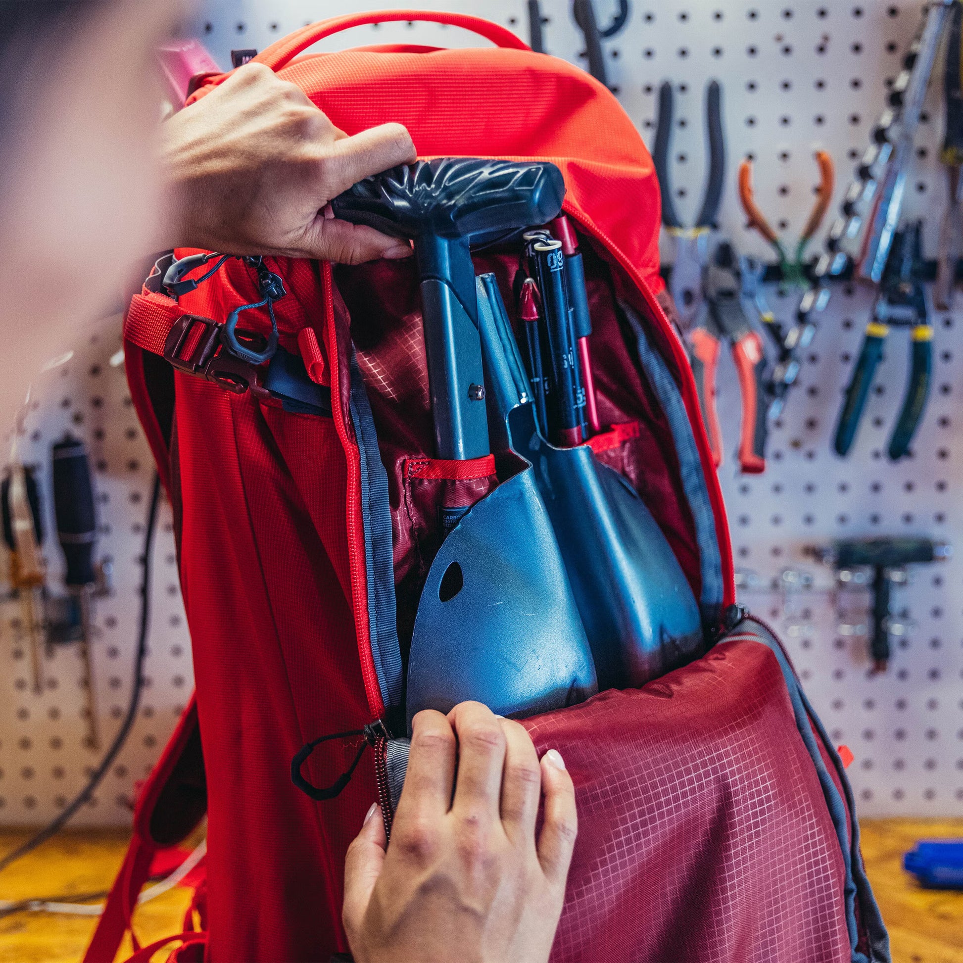 - Front Avalanche Safety Pocket: Zipper-accessible avalanche safety pocket with shovel and probe organization sleeves with room for extra gear